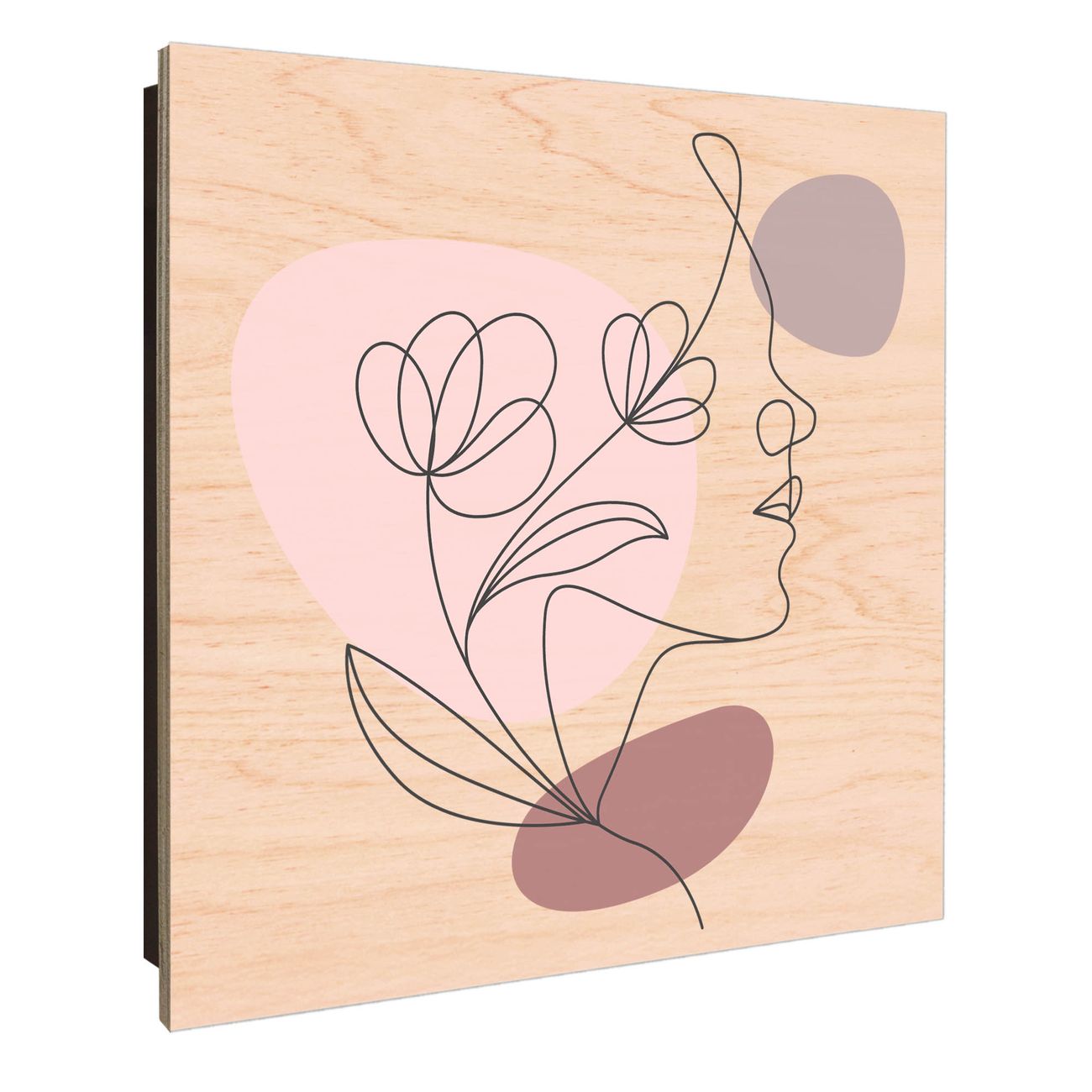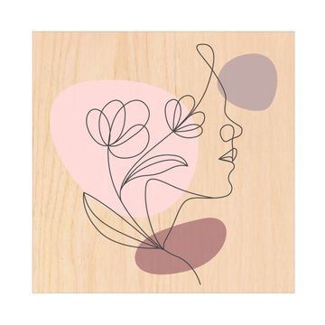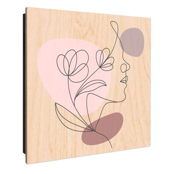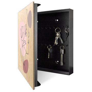 Schlüsselkasten mit Holzfront - Design Schlüsselbox Motiv Florale Line Art