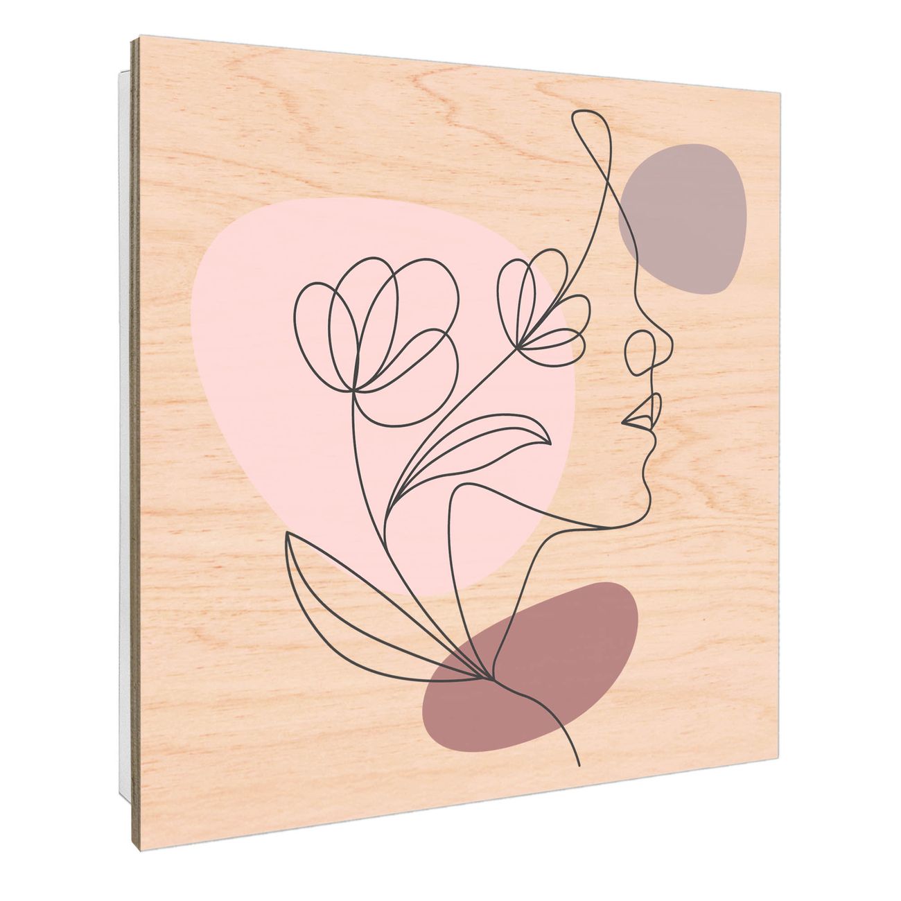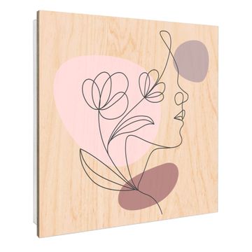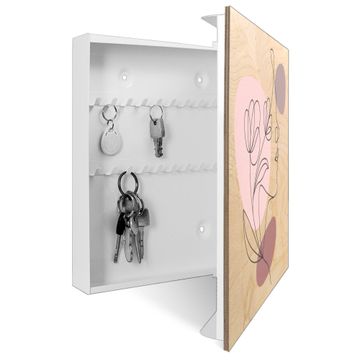 Schlüsselkasten mit Holzfront - Design Schlüsselbox Motiv Florale Line Art