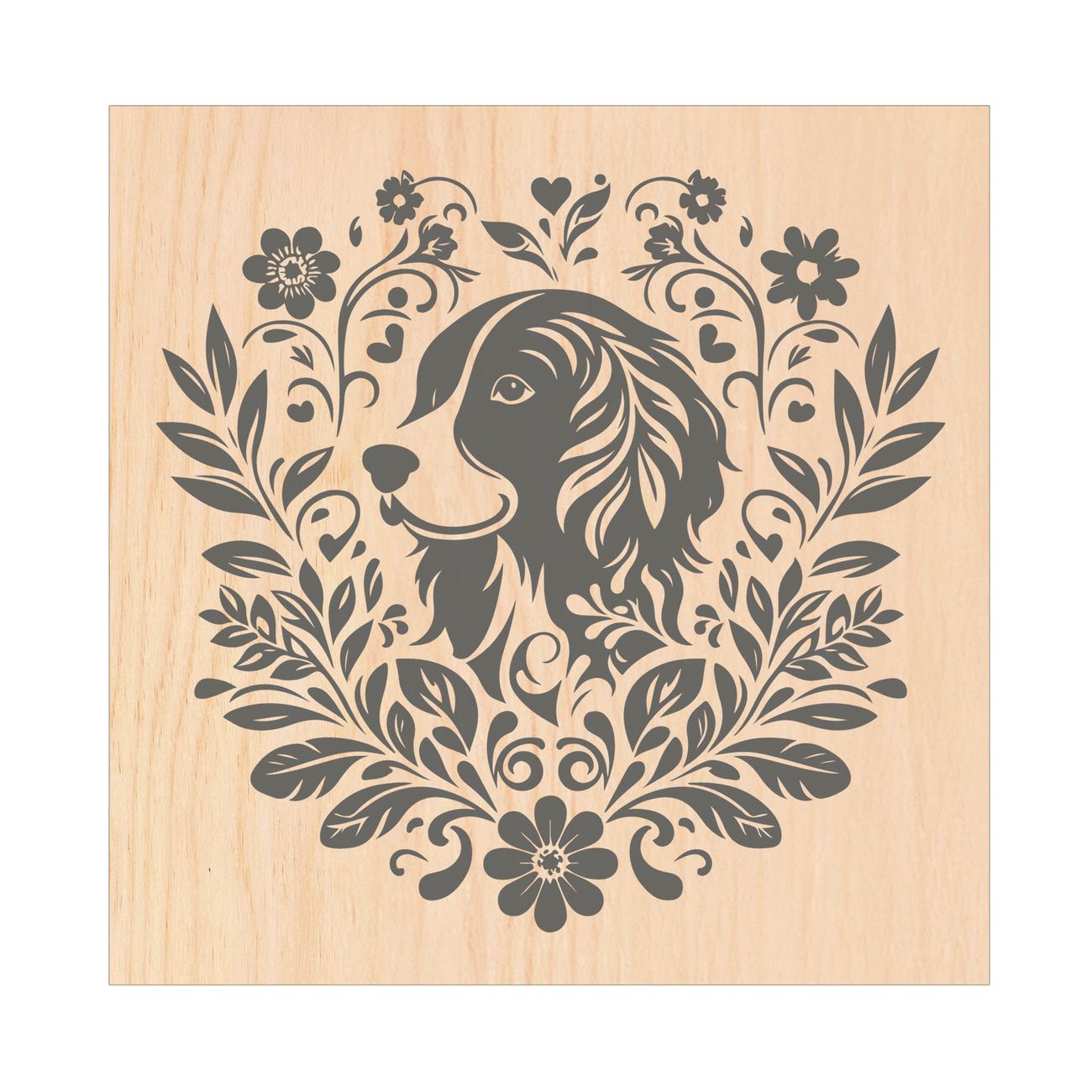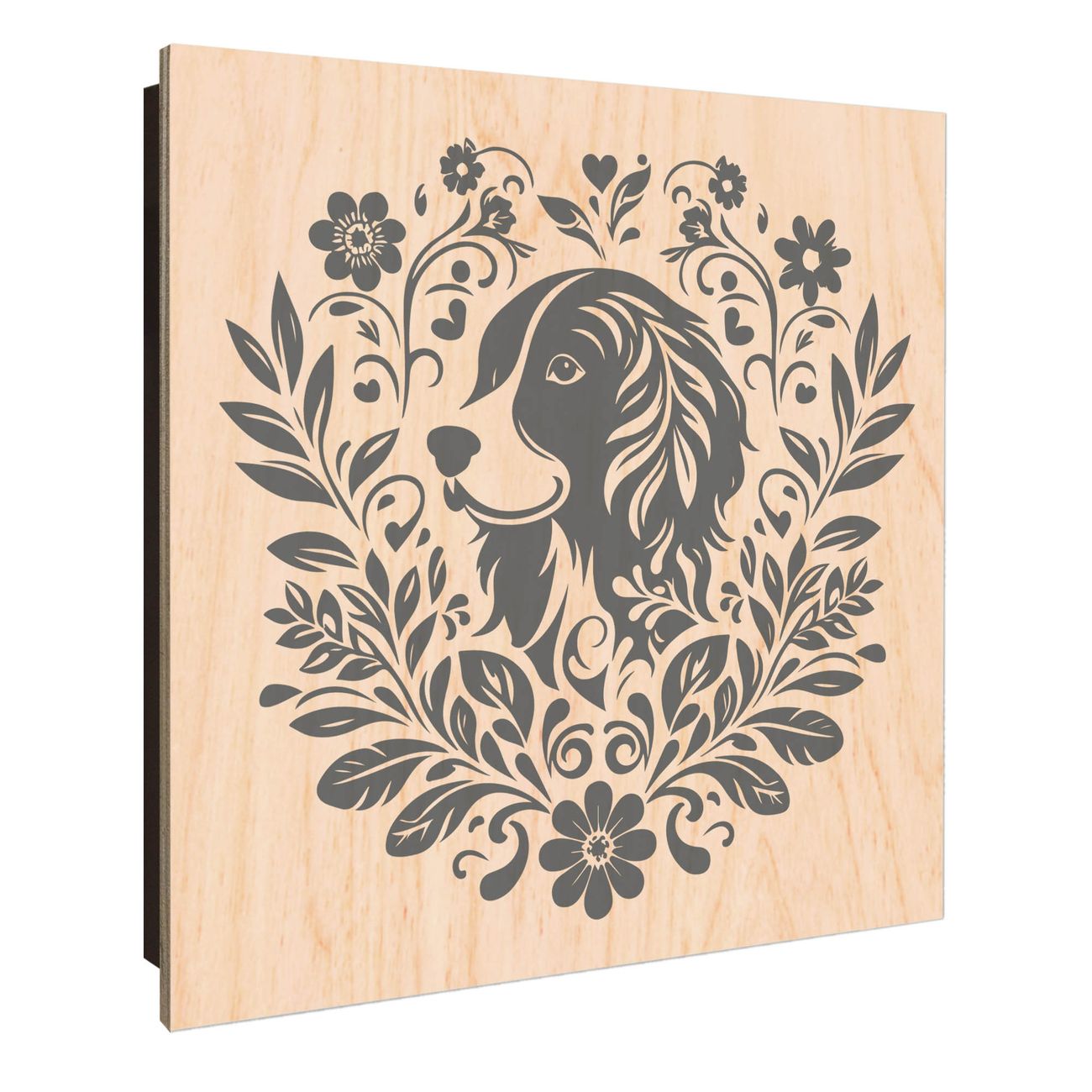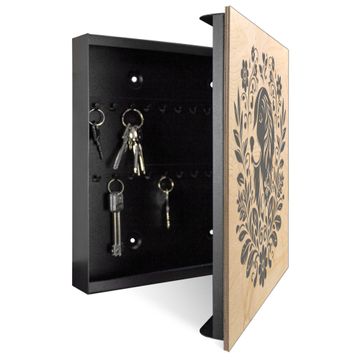 Schlüsselkasten mit Holzfront - Design Schlüsselbox Motiv Floraler Hund