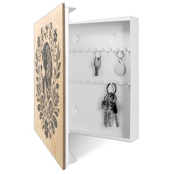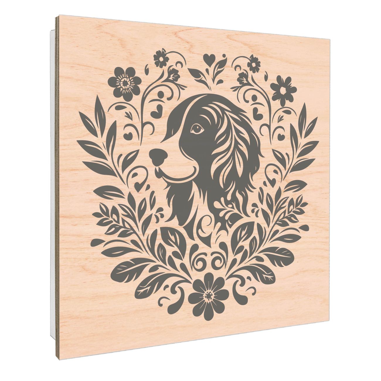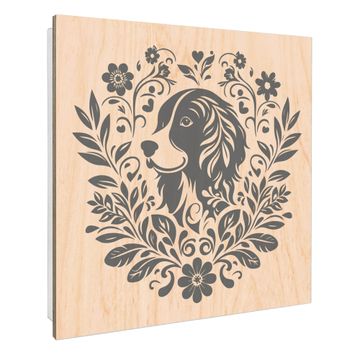 Schlüsselkasten mit Holzfront - Design Schlüsselbox Motiv Floraler Hund