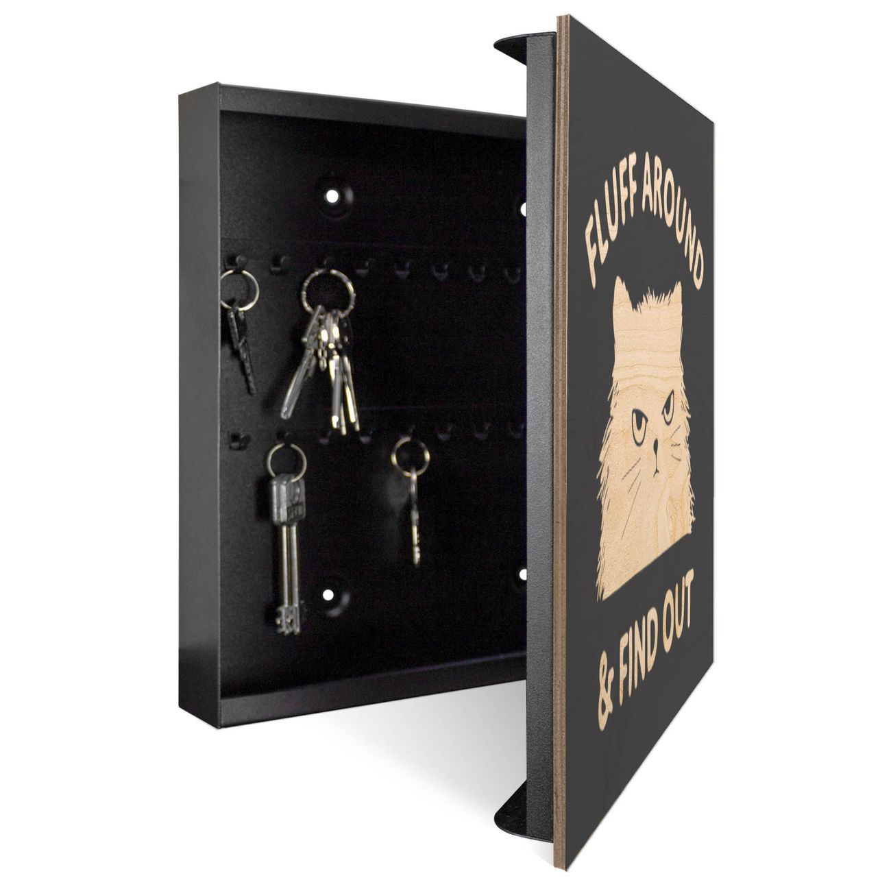 Schlüsselkasten mit Holzfront - Design Schlüsselbox Motiv Fluff Around Cat