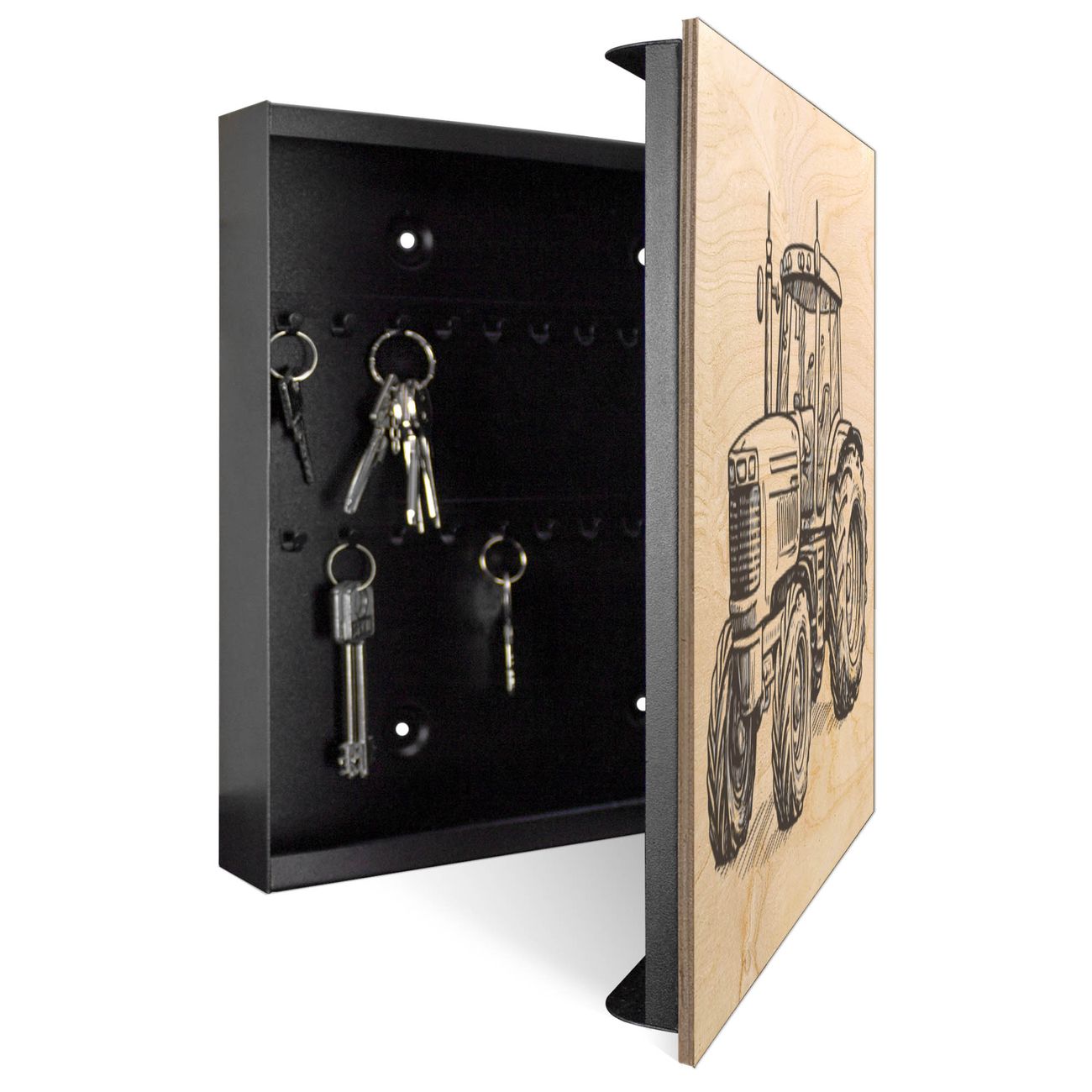 Schlüsselkasten mit Holzfront - Design Schlüsselbox Motiv Historischer Traktor