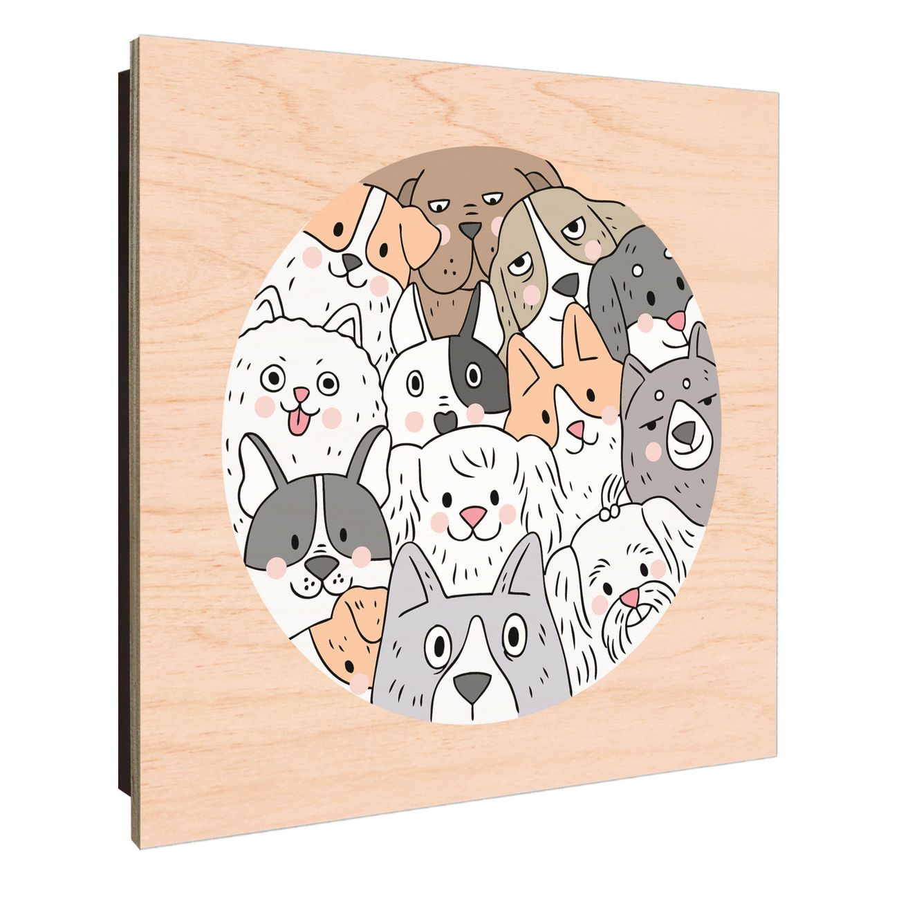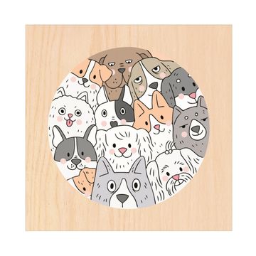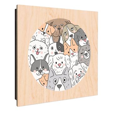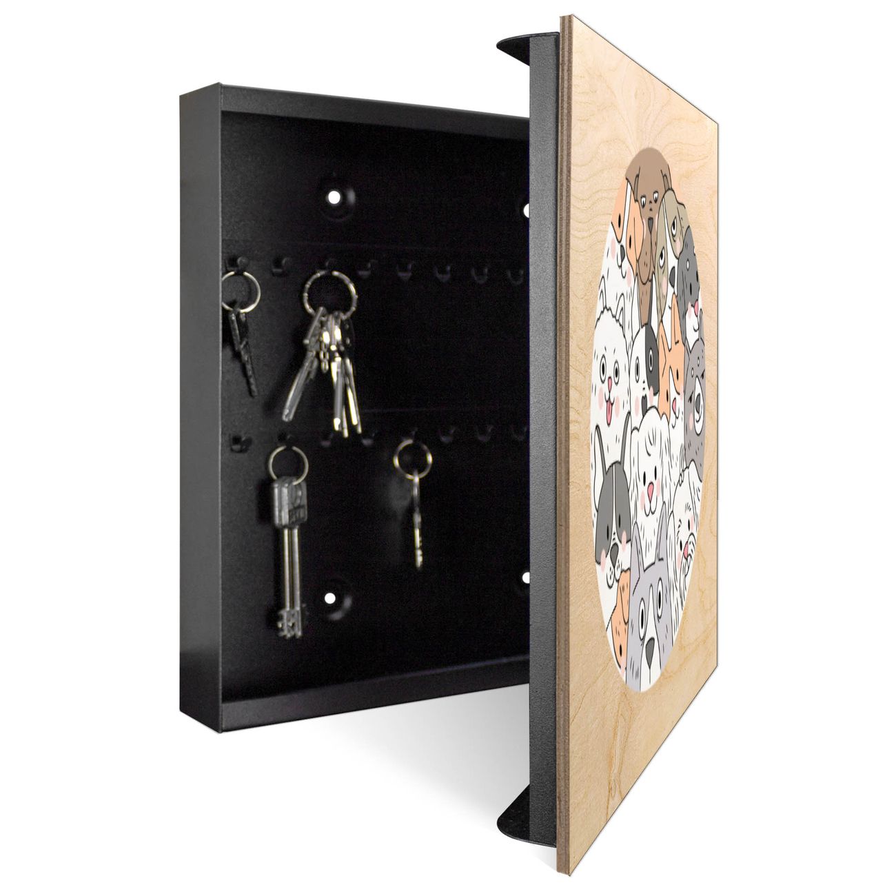 Schlüsselkasten mit Holzfront - Design Schlüsselbox Motiv Hunde Gruppe neugierig