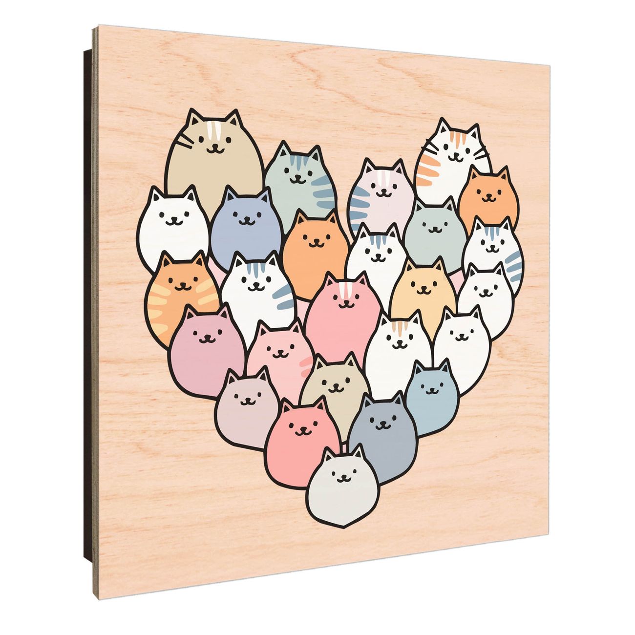 Schlüsselkasten mit Holzfront - Design Schlüsselbox Motiv Katzenherz