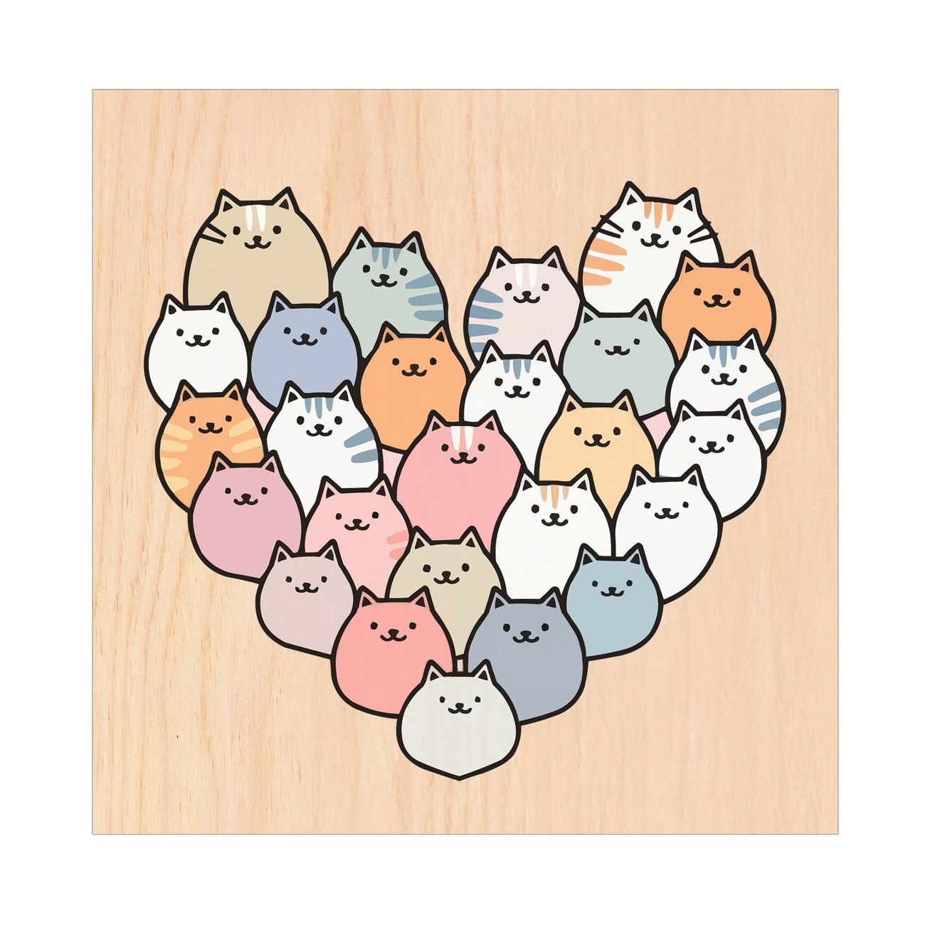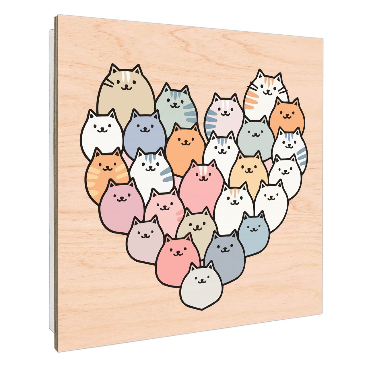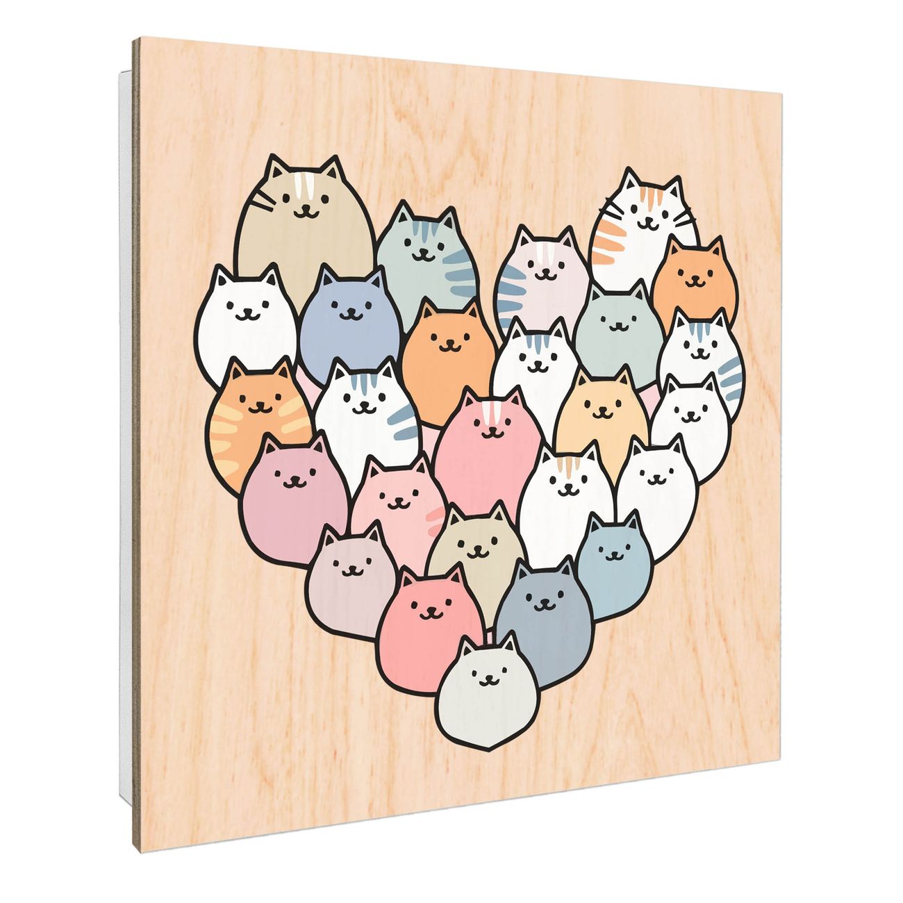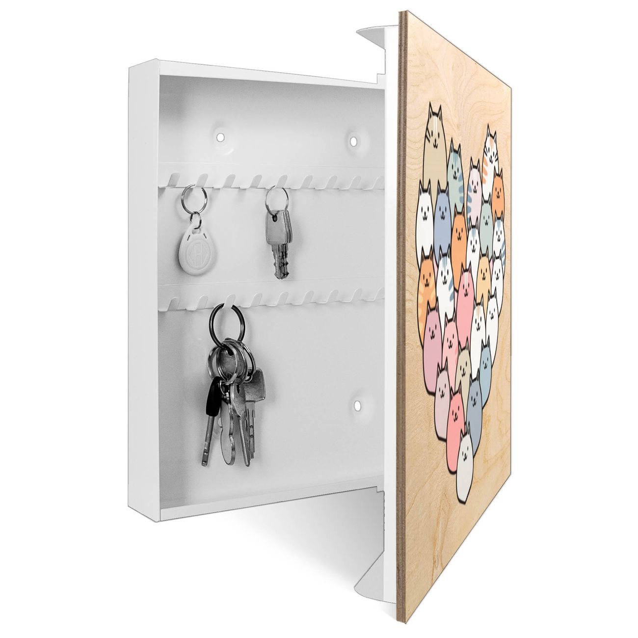 Schlüsselkasten mit Holzfront - Design Schlüsselbox Motiv Katzenherz