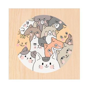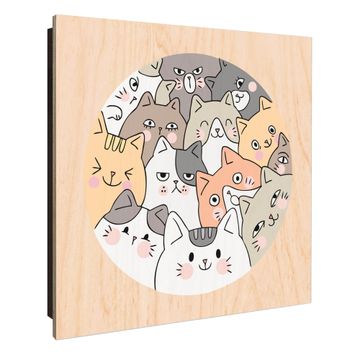 Schlüsselkasten mit Holzfront - Design Schlüsselbox Motiv Katzen Gruppe neugierig