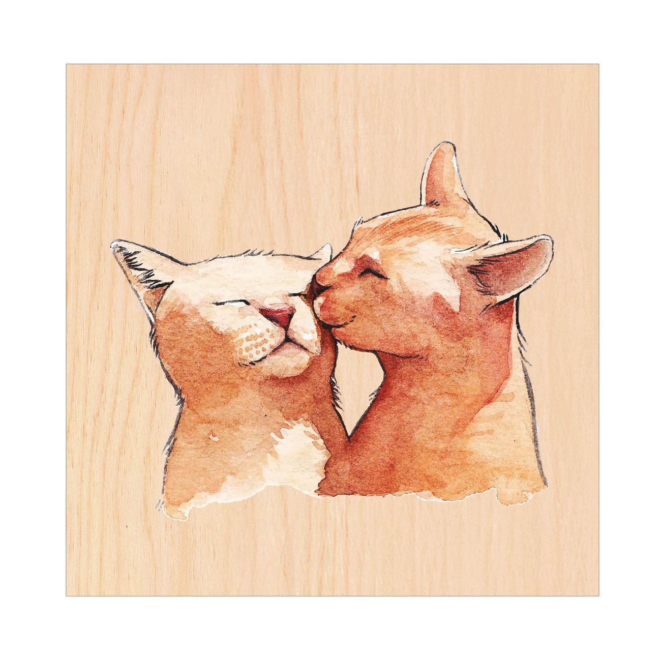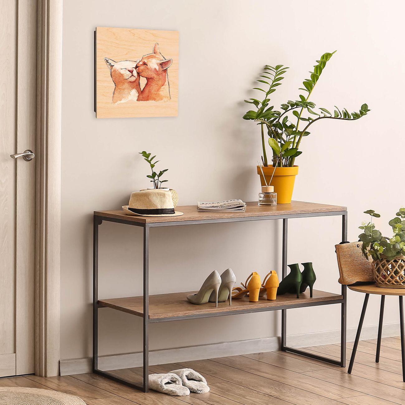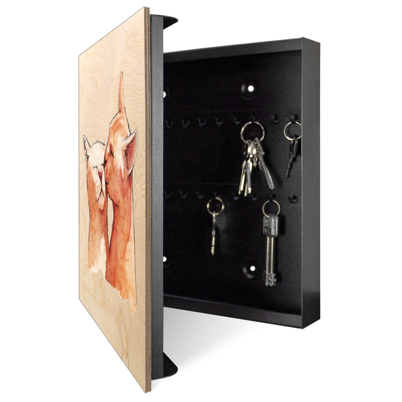 Schlüsselkasten mit Holzfront - Design Schlüsselbox Motiv Katzenkuss