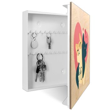 Schlüsselkasten mit Holzfront - Design Schlüsselbox Motiv Katzenliebe
