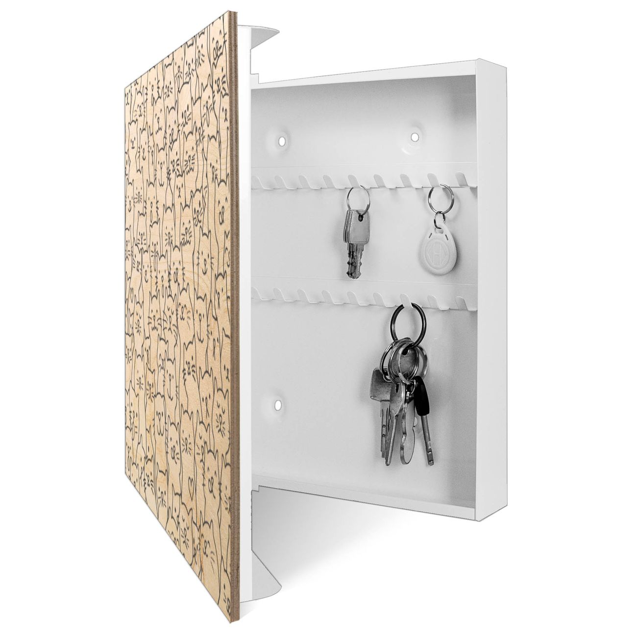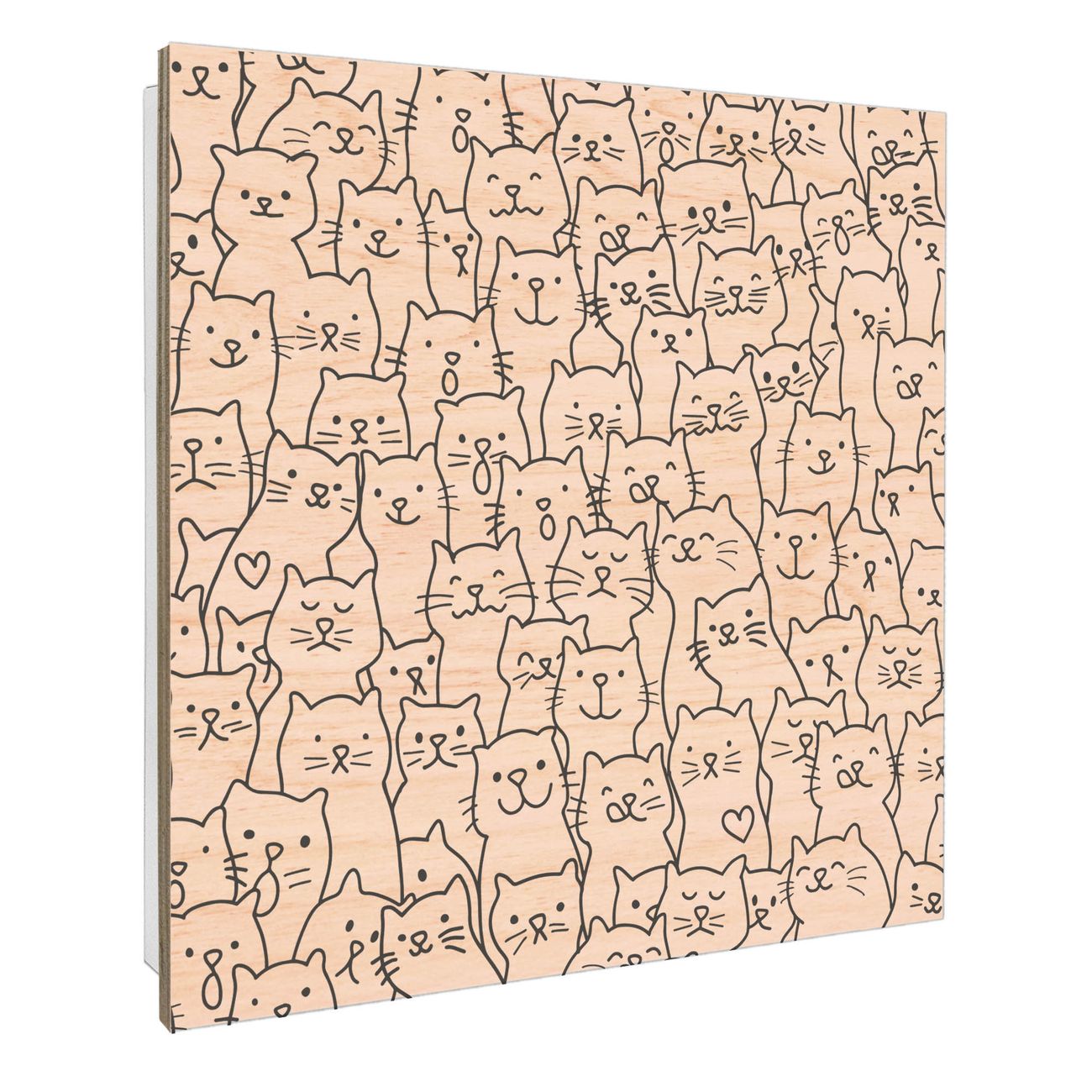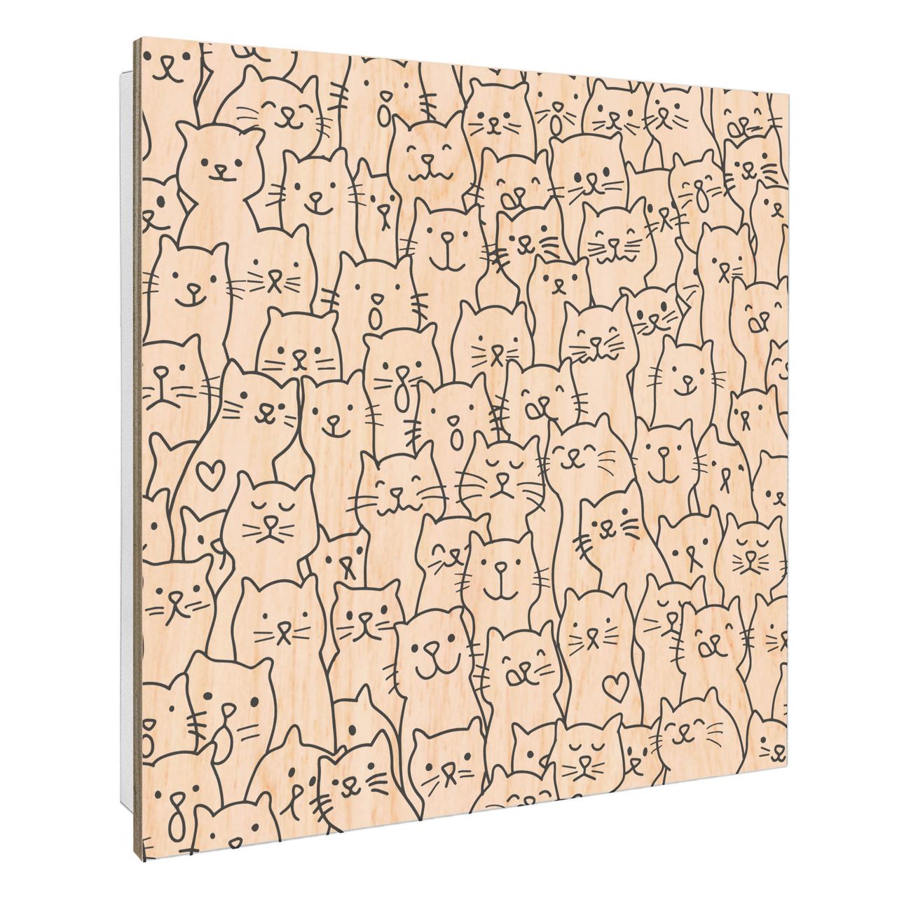 Schlüsselkasten mit Holzfront - Design Schlüsselbox Motiv Katzenparade
