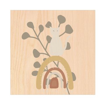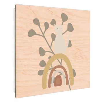 Schlüsselkasten mit Holzfront - Design Schlüsselbox Motiv Katzenregenbogen