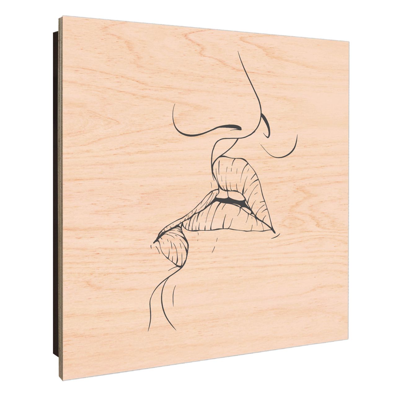 Schlüsselkasten mit Holzfront - Design Schlüsselbox Motiv Künstlerische Lippen Lineart