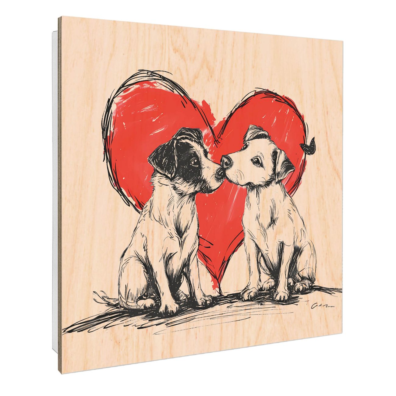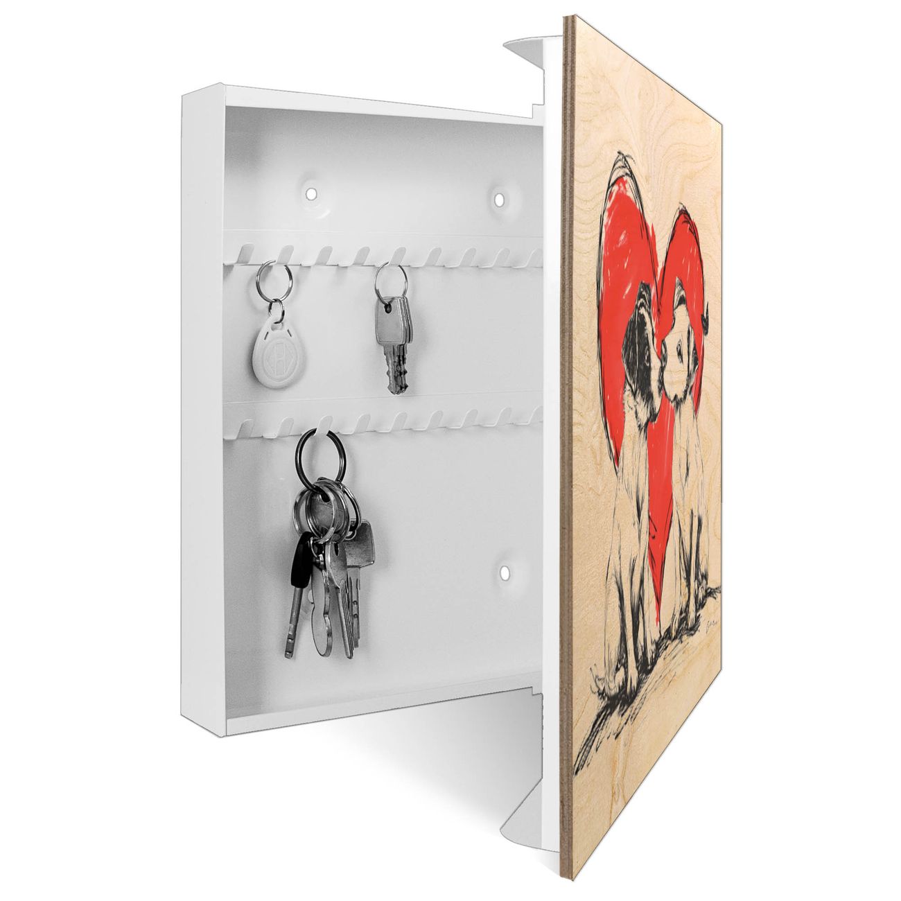 Schlüsselkasten mit Holzfront - Design Schlüsselbox Motiv Liebende Hunde