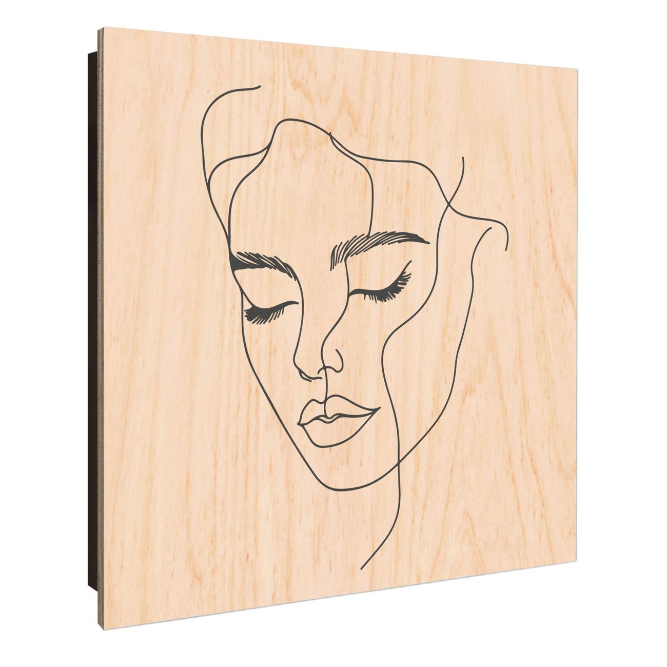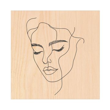 Schlüsselkasten mit Holzfront - Design Schlüsselbox Motiv Linienkunst-Portrait