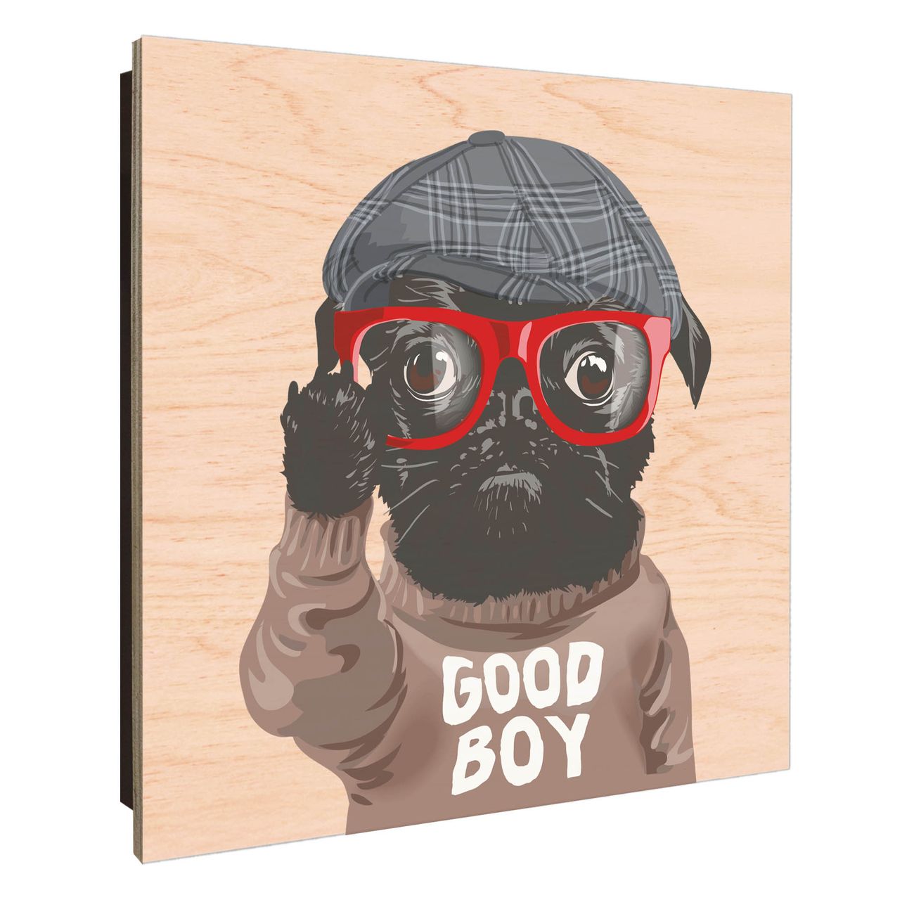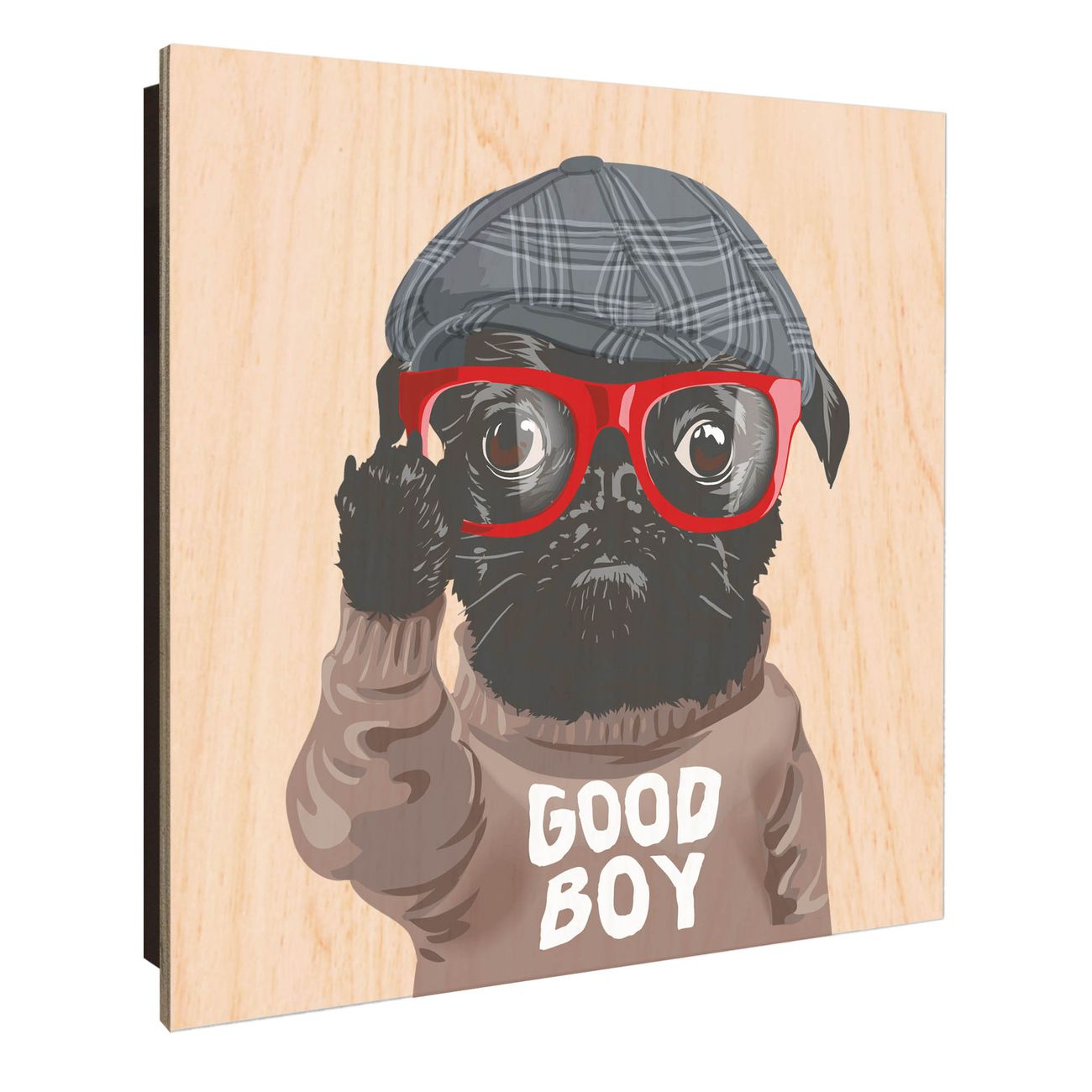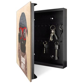 Schlüsselkasten mit Holzfront - Design Schlüsselbox Motiv Lustiger Mops mit Brille