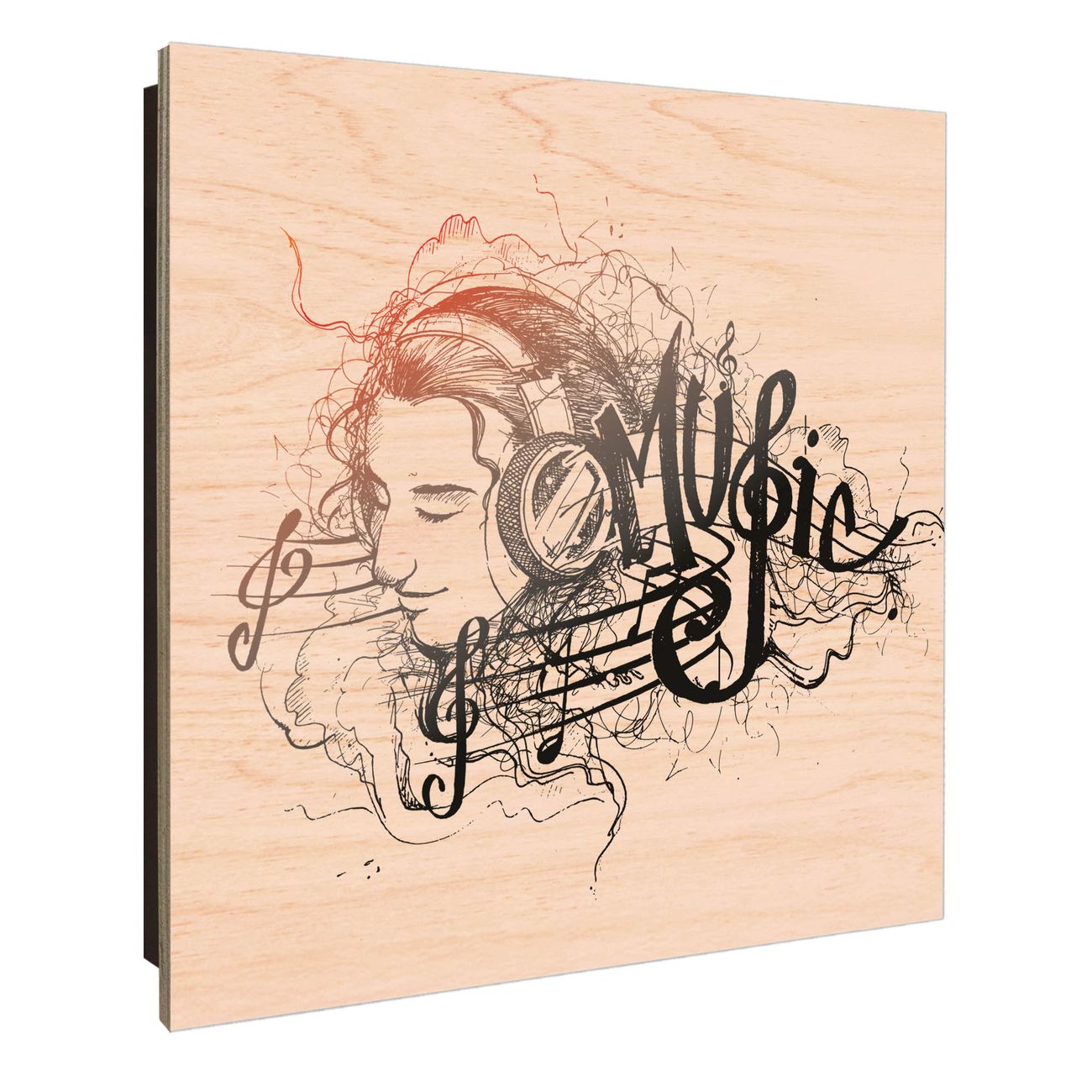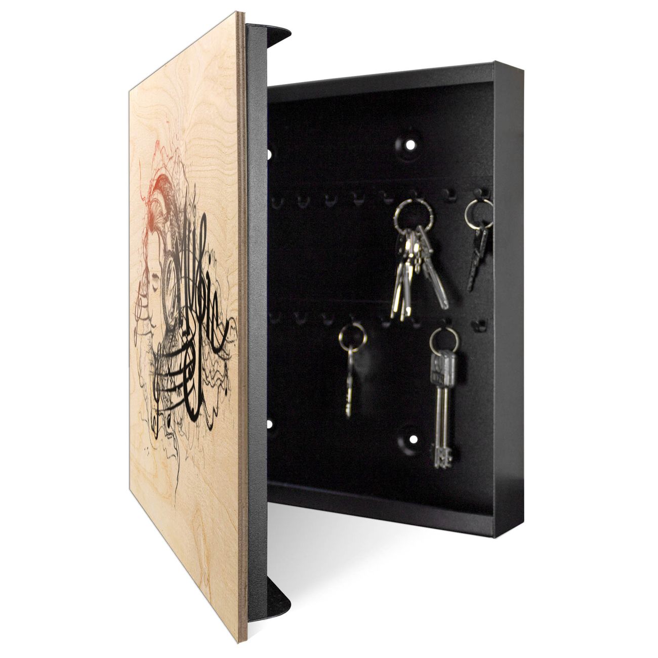 Schlüsselkasten mit Holzfront - Design Schlüsselbox Motiv Musikalische Linienkunst