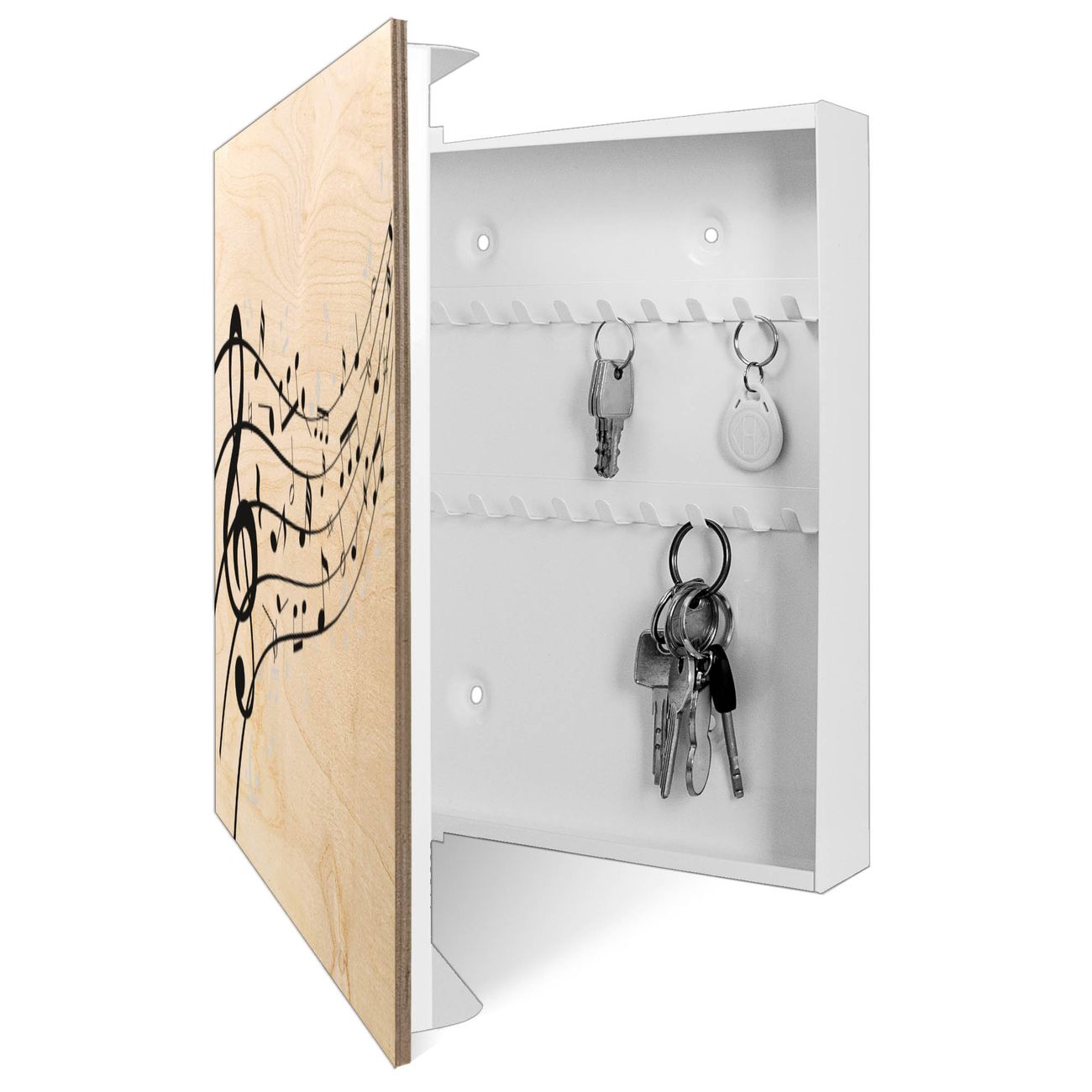 Schlüsselkasten mit Holzfront - Design Schlüsselbox Motiv Musikalische Noten