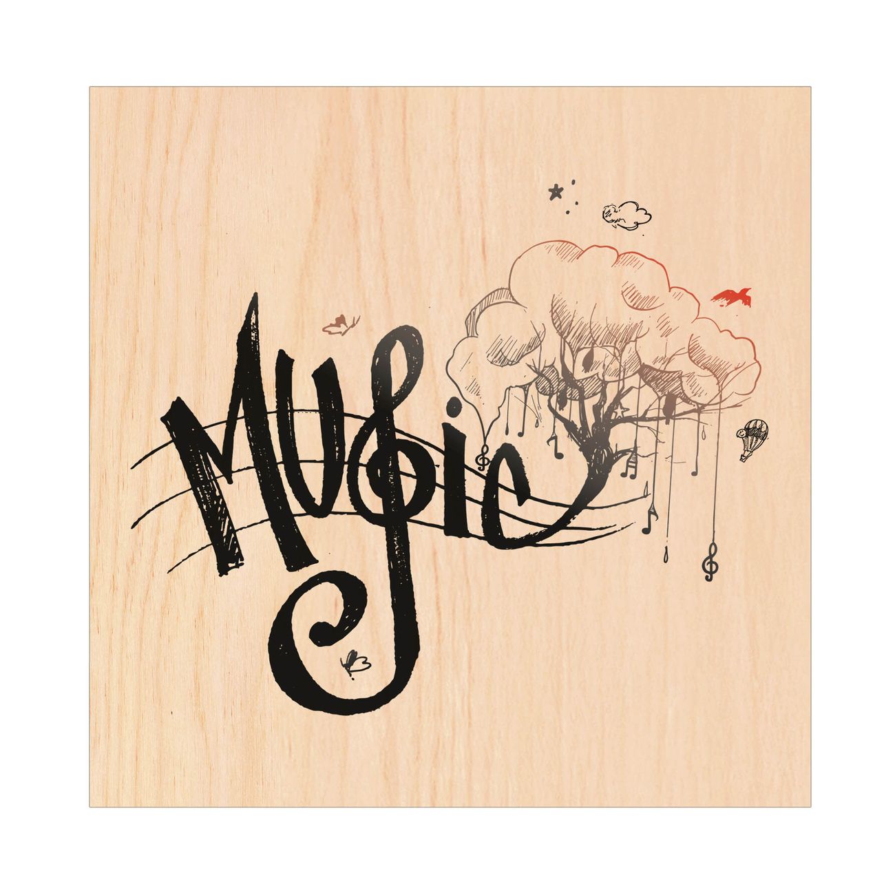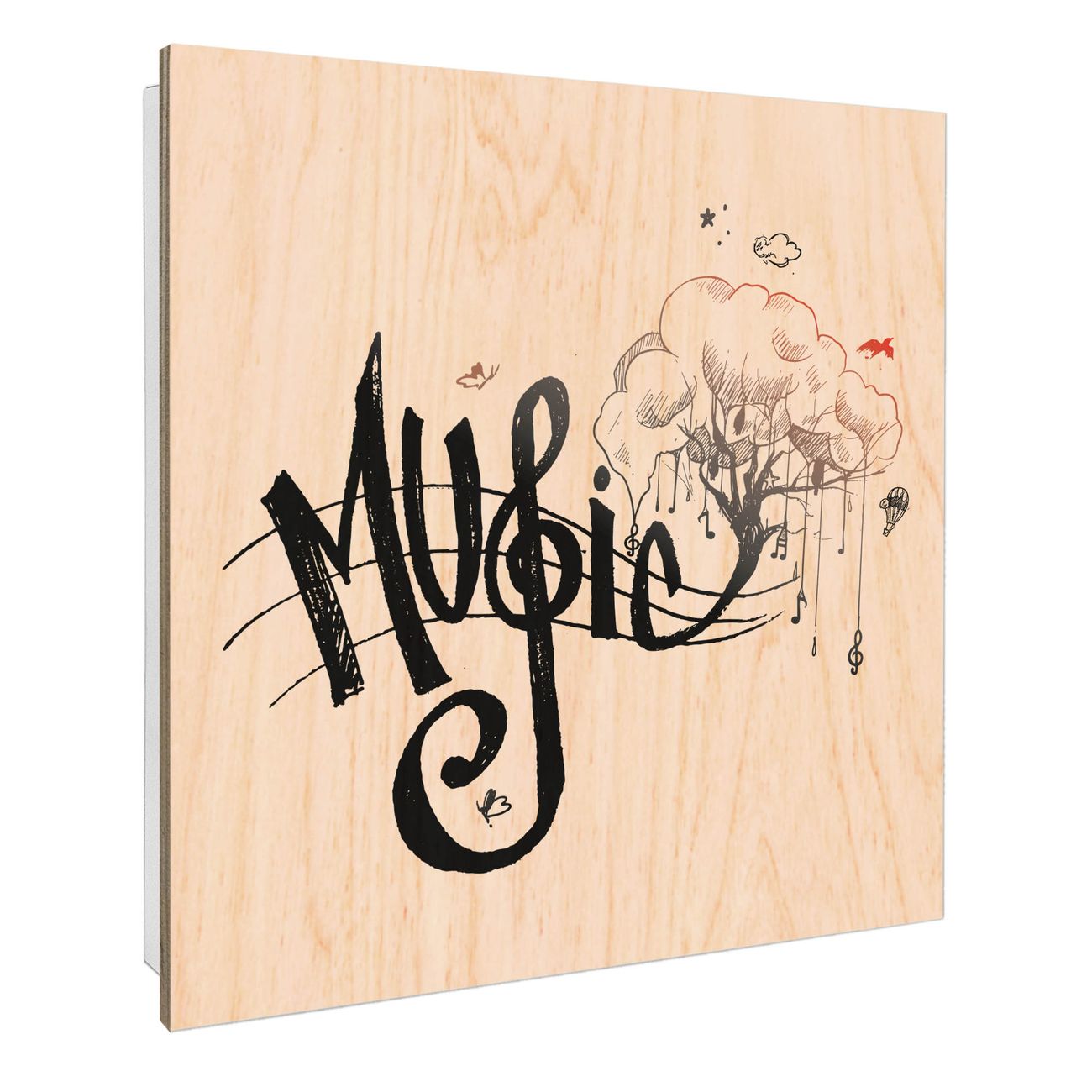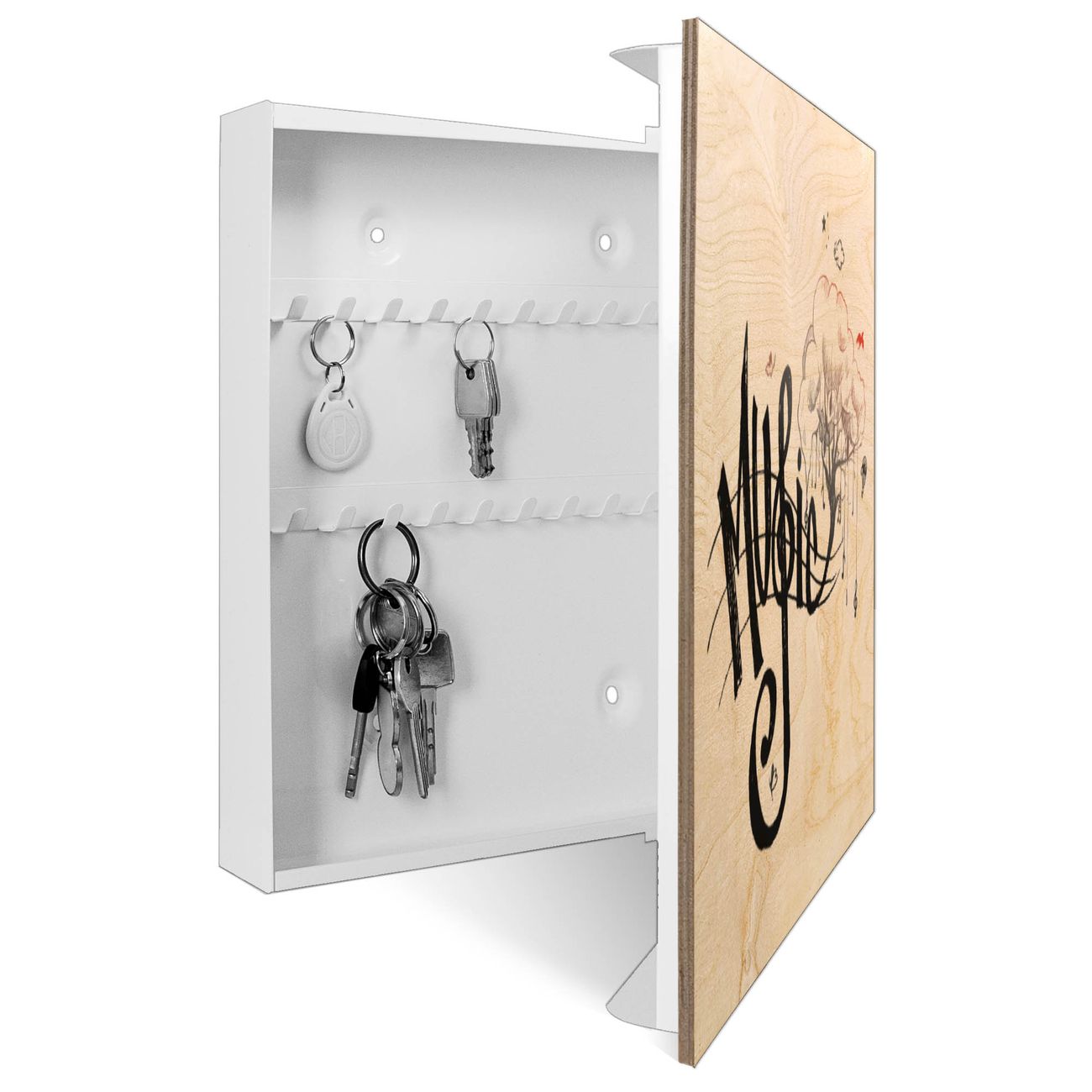 Schlüsselkasten mit Holzfront - Design Schlüsselbox Motiv Musikbaum Illustration