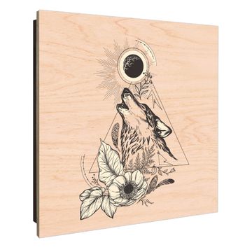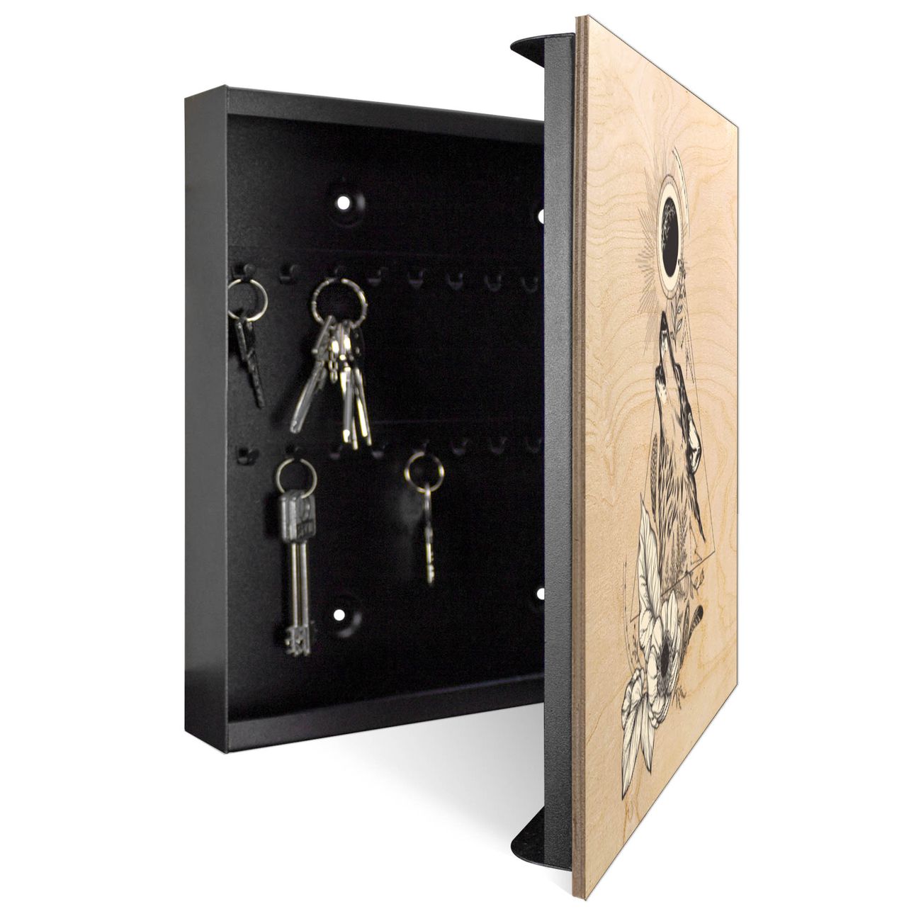 Schlüsselkasten mit Holzfront - Design Schlüsselbox Motiv Mystischer Wolf