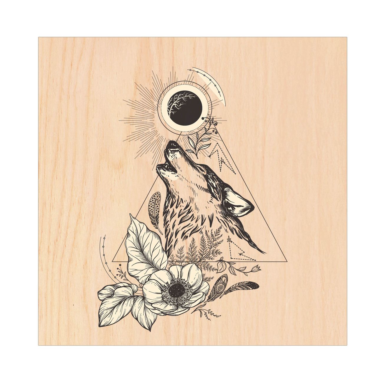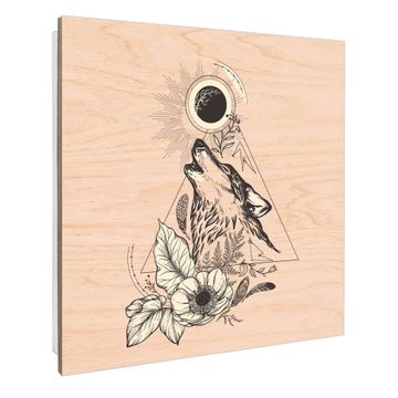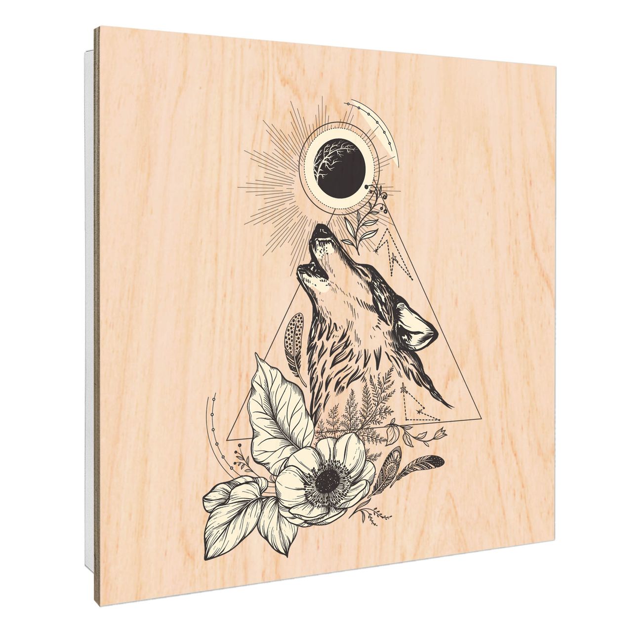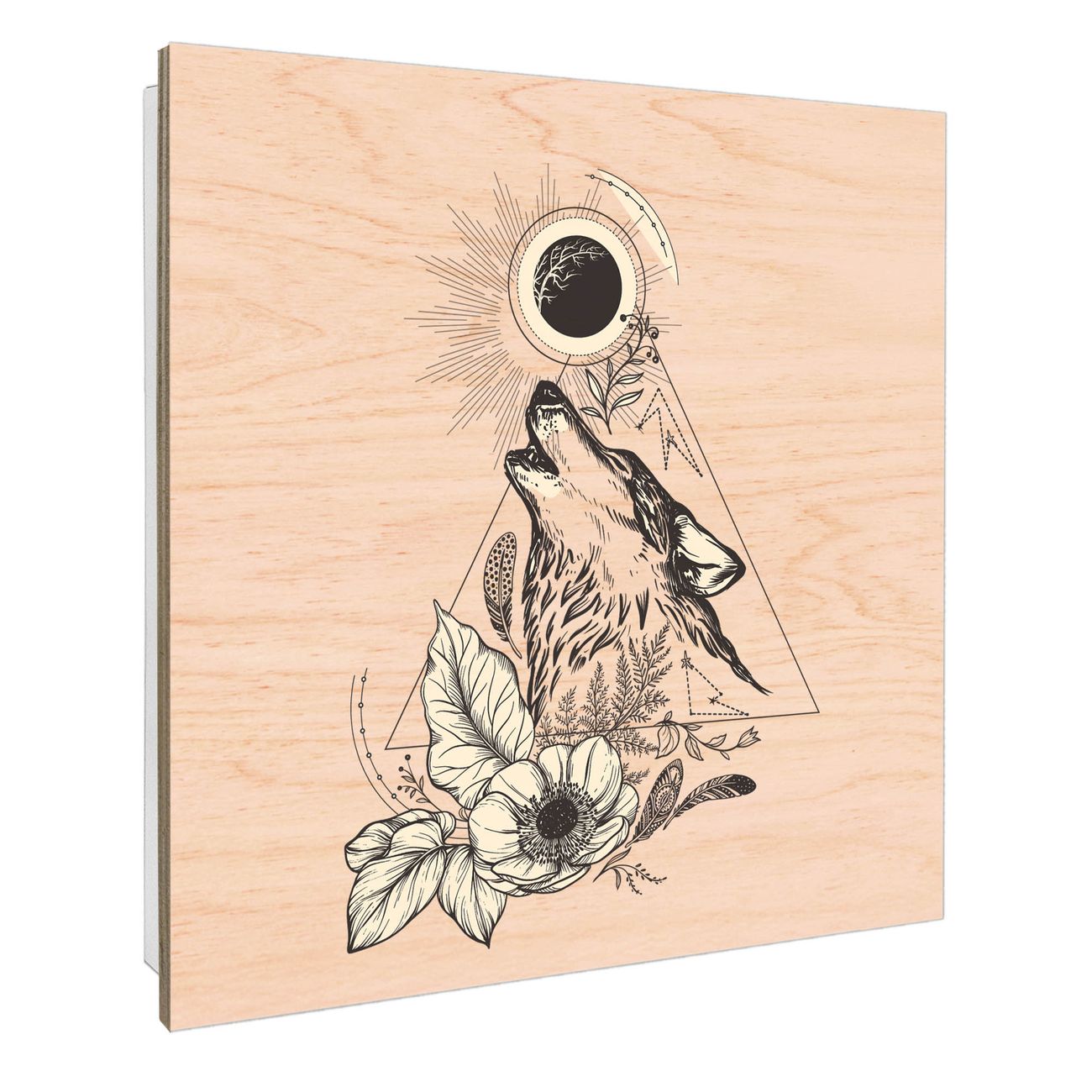 Schlüsselkasten mit Holzfront - Design Schlüsselbox Motiv Mystischer Wolf