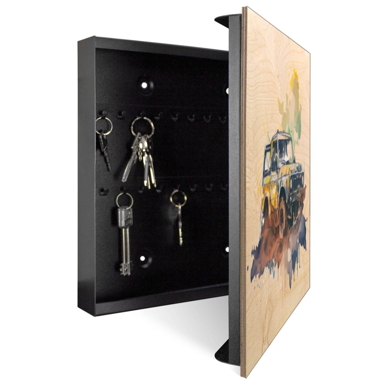 Schlüsselkasten mit Holzfront - Design Schlüsselbox Motiv Offroad Abenteuer