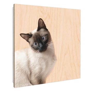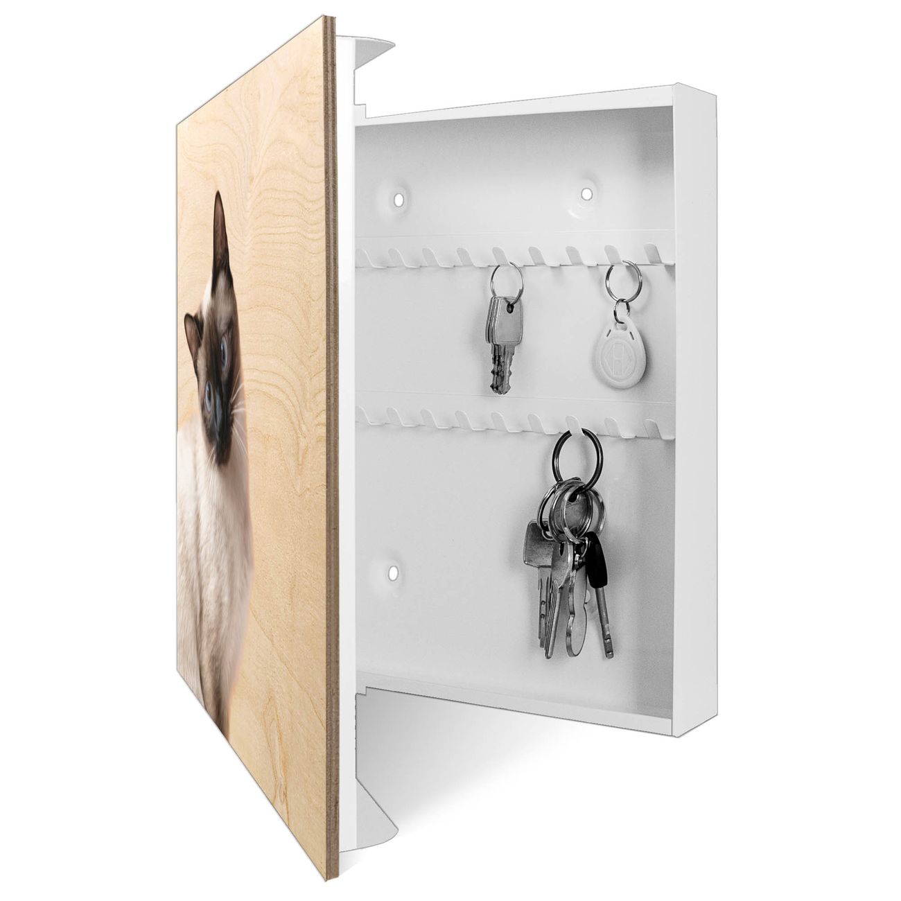 Schlüsselkasten mit Holzfront - Design Schlüsselbox Motiv Porträt einer Siamkatze