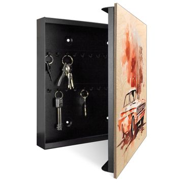Schlüsselkasten mit Holzfront - Design Schlüsselbox Motiv Retro-Fahrzeug in der Landschaft