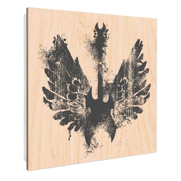 Schlüsselkasten mit Holzfront - Design Schlüsselbox Motiv Rock Gitarre Flügel
