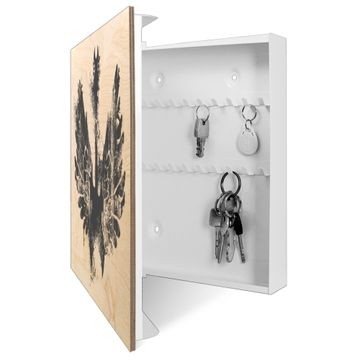 Bringe Ordnung und Eleganz in deinen Eingangsbereich mit dem banjado Schlüsselkasten Motiv Motiv Rock Wings. Die moderne Schlüsselbox kombiniert funktionales Design mit hochwertiger Verarbeitung und wird so zu einem echten Hingucker in Flur, Büro oder Ferienwohnung. ✅ Stilvolle Schlüsselaufbewahrung mit moderner Holzfront im Motiv Motiv Rock Wings Der Design-Schlüsselkasten Motiv Motiv Rock Wings bietet Platz für bis zu 50 Schlüssel, die auf 5 stabilen Reihen mit je 10 Haken übersichtlich verstaut werden. Mit seinen kompakten Maßen von 30 x 30 x 5 cm passt die Schlüsselbox perfekt auch in kleinere Räume. Der weiß lackierte Korpus mit dem Scharnier auf der linken Seite harmoniert mit der bedruckten Holzfront und fügt sich nahtlos in jedes Wohnambiente ein. Ob als Schlüsselorganizer für Zuhause oder als praktische Lösung für Büros, Praxen und Gewerbe - der banjado Schlüsselkasten sorgt für Ordnung und Übersicht. Durch die klare Strukturierung der Haken lassen sich auch viele Schlüssel problemlos verwalten. Die Schlüsselbox Motiv Motiv Rock Wings zur Wandmontage wird inklusive Befestigungsmaterial geliefert und ist schnell angebracht. So hast du deine Schlüssel jederzeit griffbereit und zugleich stilvoll verstaut. Mit diesem banjado Schlüsselkasten Motiv Motiv Rock Wings kombinierst du praktische Aufbewahrung mit stilvollem Wohndesign. Ob privat oder geschäftlich - die Schlüsselbox sorgt für mehr Ordnung, Übersicht und ein wohnliches Ambiente.Vorteile im Überblick