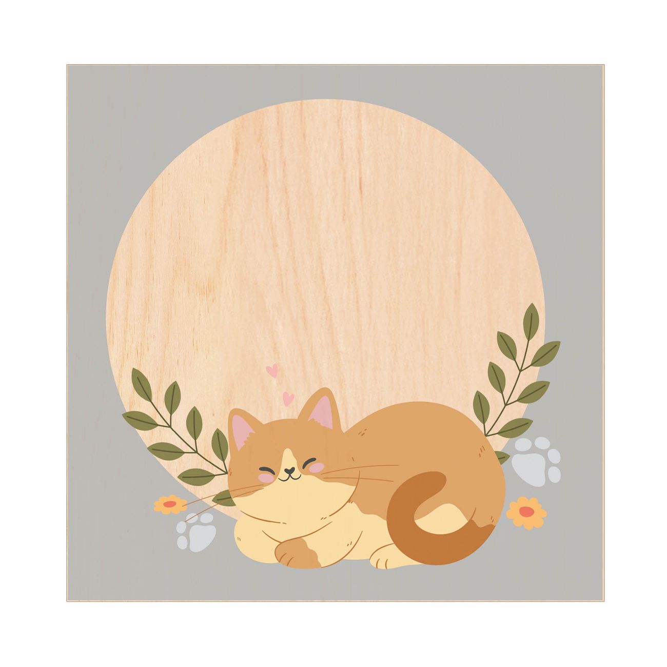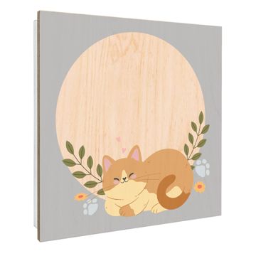 Schlüsselkasten mit Holzfront - Design Schlüsselbox Motiv Schlafende Katze im Garten