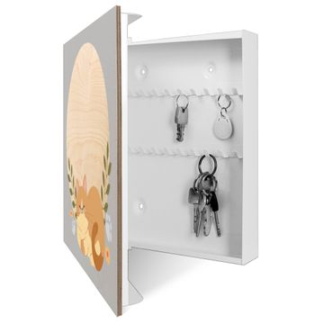 Bringe Ordnung und Eleganz in deinen Eingangsbereich mit dem banjado Schlüsselkasten Motiv Motiv Schlafende Katze im Garten. Die moderne Schlüsselbox kombiniert funktionales Design mit hochwertiger Verarbeitung und wird so zu einem echten Hingucker in Flur, Büro oder Ferienwohnung. ✅ Stilvolle Schlüsselaufbewahrung mit moderner Holzfront im Motiv Motiv Schlafende Katze im Garten Der Design-Schlüsselkasten Motiv Motiv Schlafende Katze im Garten bietet Platz für bis zu 50 Schlüssel, die auf 5 stabilen Reihen mit je 10 Haken übersichtlich verstaut werden. Mit seinen kompakten Maßen von 30 x 30 x 5 cm passt die Schlüsselbox perfekt auch in kleinere Räume. Der weiß lackierte Korpus mit dem Scharnier auf der linken Seite harmoniert mit der bedruckten Holzfront und fügt sich nahtlos in jedes Wohnambiente ein. Ob als Schlüsselorganizer für Zuhause oder als praktische Lösung für Büros, Praxen und Gewerbe - der banjado Schlüsselkasten sorgt für Ordnung und Übersicht. Durch die klare Strukturierung der Haken lassen sich auch viele Schlüssel problemlos verwalten. Die Schlüsselbox Motiv Motiv Schlafende Katze im Garten zur Wandmontage wird inklusive Befestigungsmaterial geliefert und ist schnell angebracht. So hast du deine Schlüssel jederzeit griffbereit und zugleich stilvoll verstaut. Mit diesem banjado Schlüsselkasten Motiv Motiv Schlafende Katze im Garten kombinierst du praktische Aufbewahrung mit stilvollem Wohndesign. Ob privat oder geschäftlich - die Schlüsselbox sorgt für mehr Ordnung, Übersicht und ein wohnliches Ambiente.Vorteile im Überblick