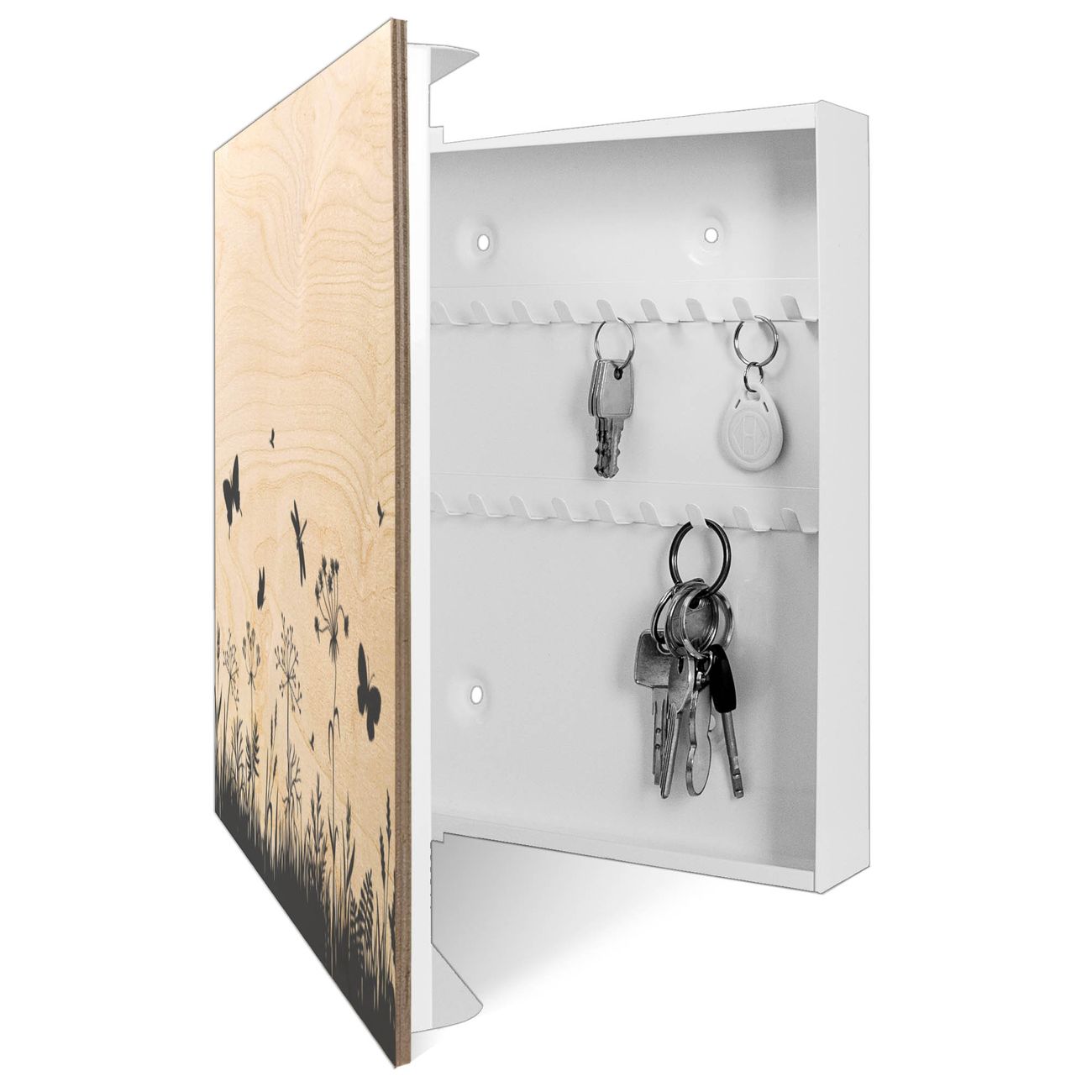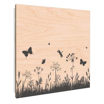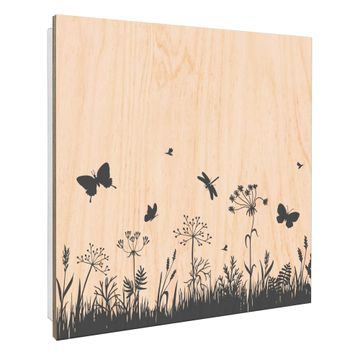 Schlüsselkasten mit Holzfront - Design Schlüsselbox Motiv Sommerwiese Silhouette
