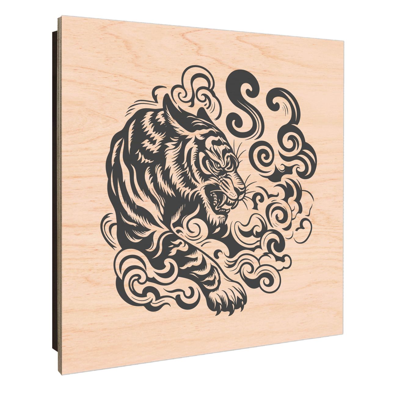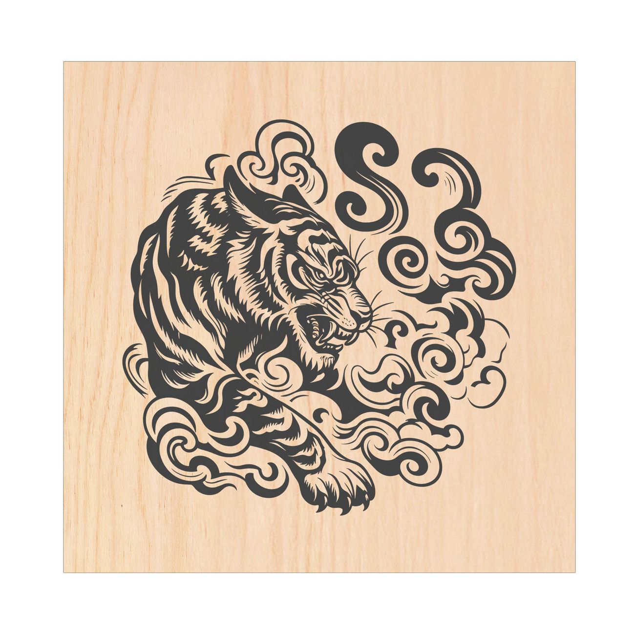 Schlüsselkasten mit Holzfront - Design Schlüsselbox Motiv Tiger Illustration
