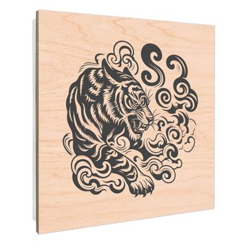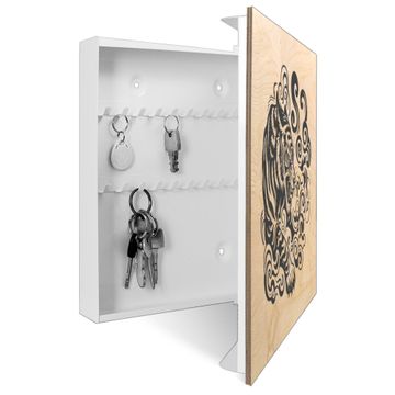 Schlüsselkasten mit Holzfront - Design Schlüsselbox Motiv Tiger Illustration