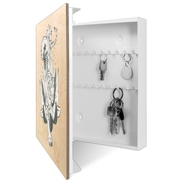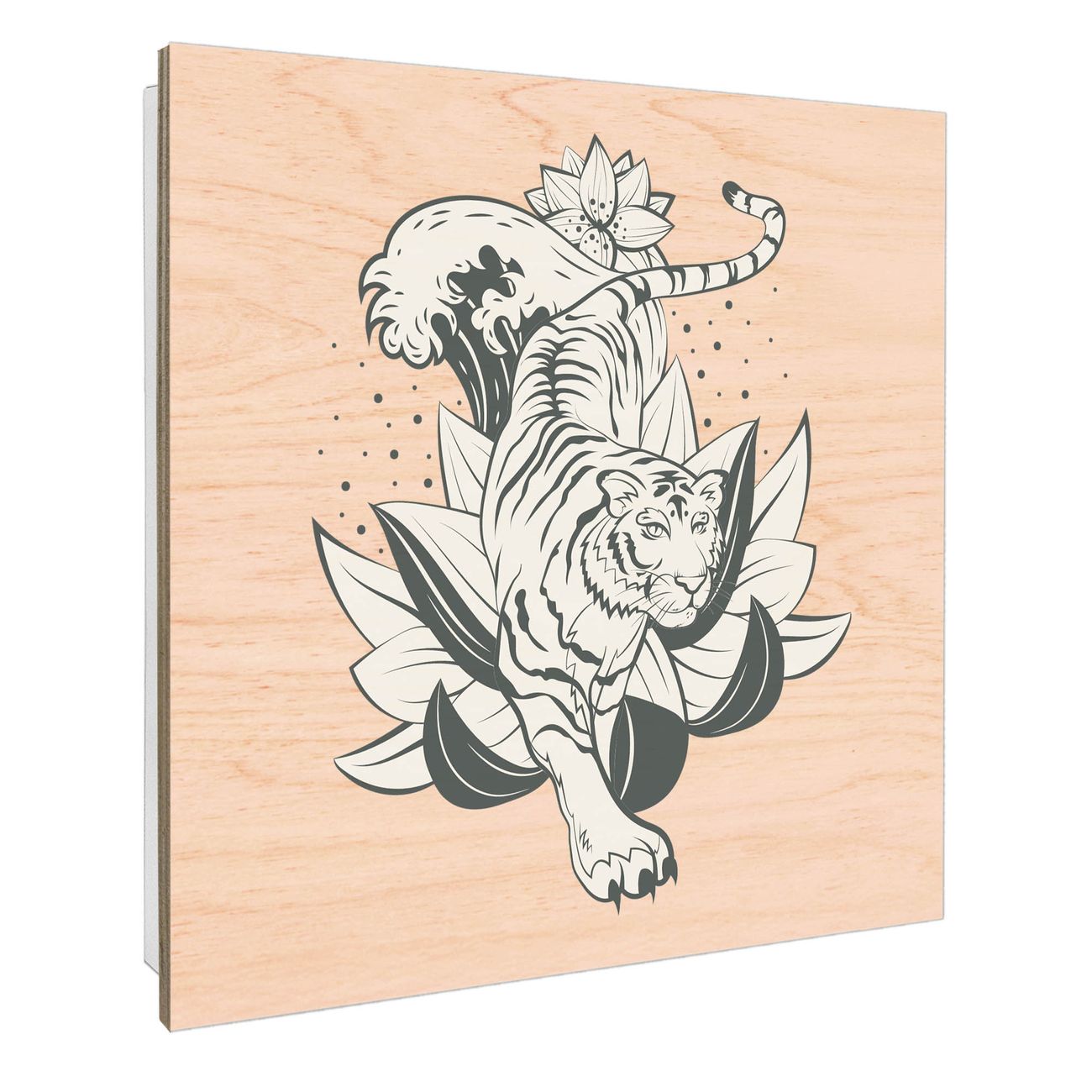 Schlüsselkasten mit Holzfront - Design Schlüsselbox Motiv Tiger im Blumenmeer