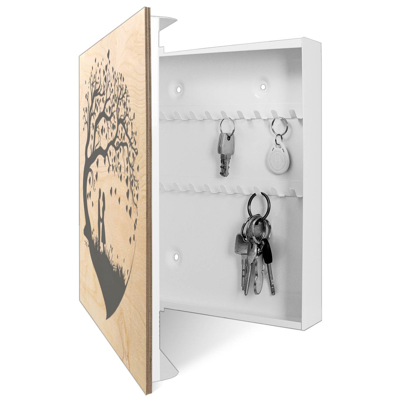 Schlüsselkasten mit Holzfront - Design Schlüsselbox Motiv Verliebter Baum