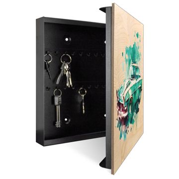 Schlüsselkasten mit Holzfront - Design Schlüsselbox Motiv Vintage Auto Aquarell
