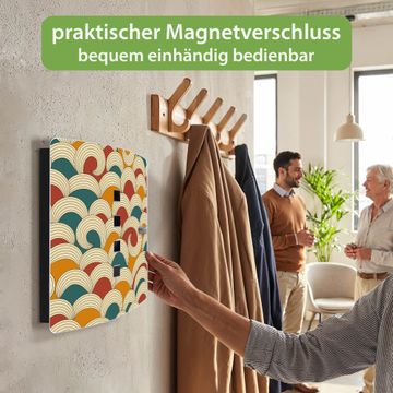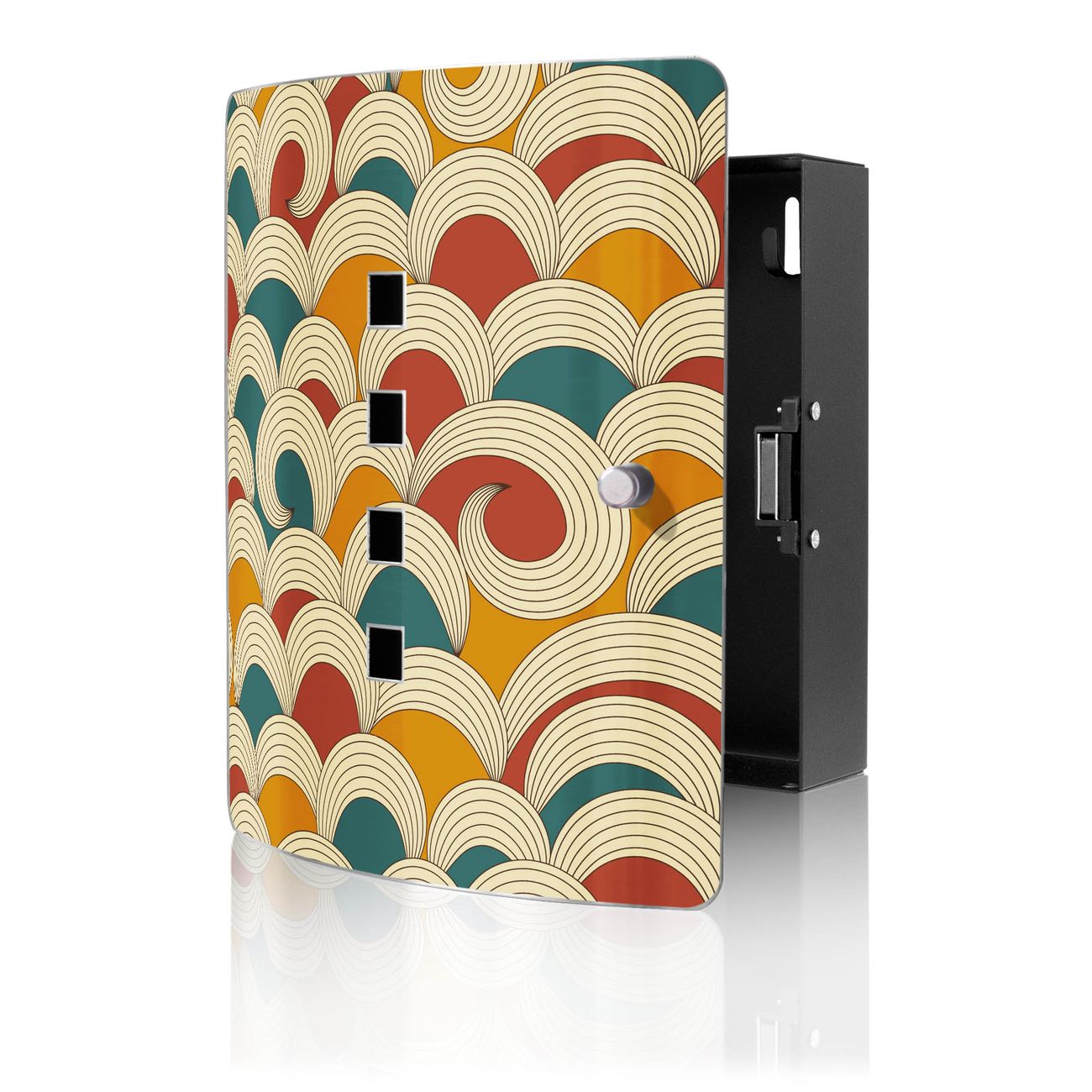 Funktion / Nutzen: Die leicht geschwungene Edelstahltür ist mit einer hochwertigen Motivfolie und dem Motiv Motiv Abstract Waves kaschiert. Ein praktischer Magnetverschluss ermöglicht Ihnen ein schnelles Öffnen und Schließen. Befestigt wird der Schlüsselkasten an 2 Stellen auf der Rückseite, passendes Montagematerial fügen wir bereits bei.