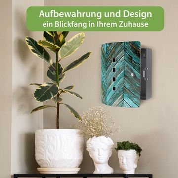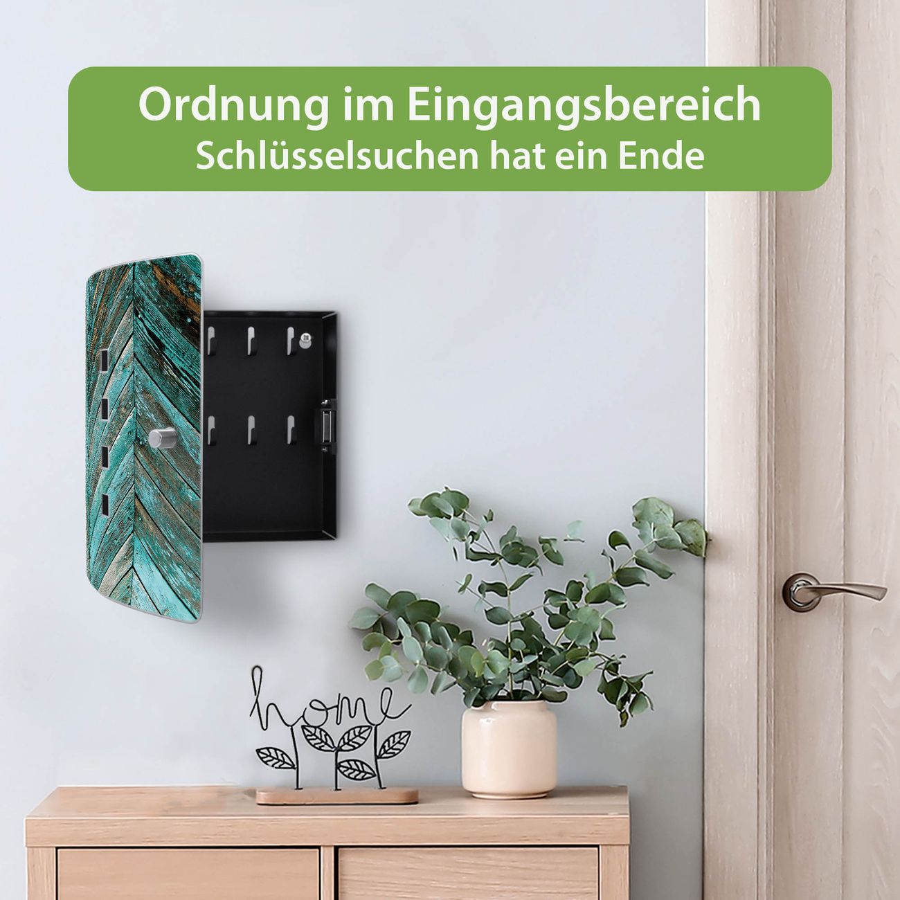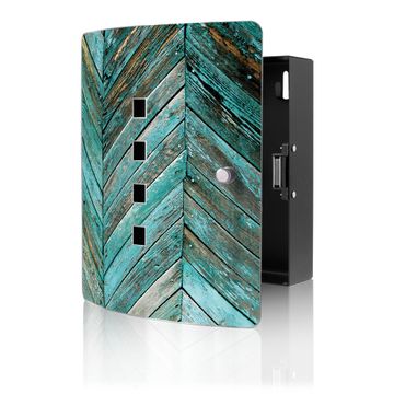 Funktion / Nutzen: Die leicht geschwungene Edelstahltür ist mit einer hochwertigen Motivfolie und dem Motiv Motiv Altes Holz Blau kaschiert. Ein praktischer Magnetverschluss ermöglicht Ihnen ein schnelles Öffnen und Schließen. Befestigt wird der Schlüsselkasten an 2 Stellen auf der Rückseite, passendes Montagematerial fügen wir bereits bei.