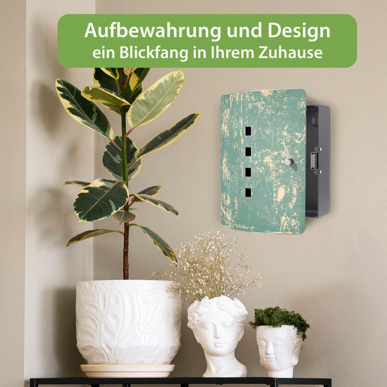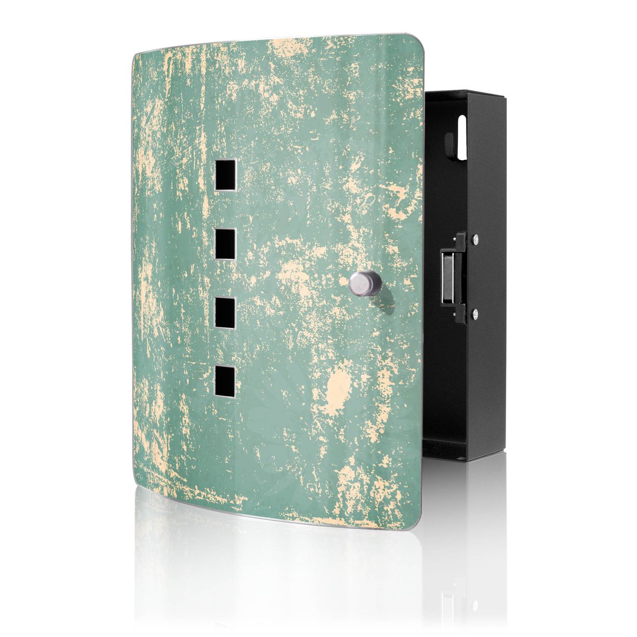 Funktion / Nutzen: Die leicht geschwungene Edelstahltür ist mit einer hochwertigen Motivfolie und dem Motiv Motiv Altes Papier kaschiert. Ein praktischer Magnetverschluss ermöglicht Ihnen ein schnelles Öffnen und Schließen. Befestigt wird der Schlüsselkasten an 2 Stellen auf der Rückseite, passendes Montagematerial fügen wir bereits bei.