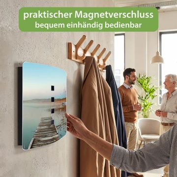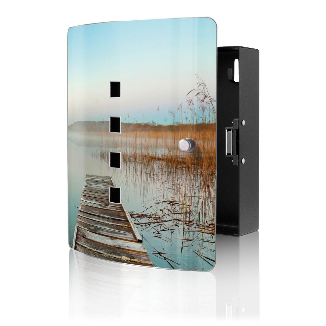 Funktion / Nutzen: Die leicht geschwungene Edelstahltür ist mit einer hochwertigen Motivfolie und dem Motiv Motiv Alter Steg kaschiert. Ein praktischer Magnetverschluss ermöglicht Ihnen ein schnelles Öffnen und Schließen. Befestigt wird der Schlüsselkasten an 2 Stellen auf der Rückseite, passendes Montagematerial fügen wir bereits bei.