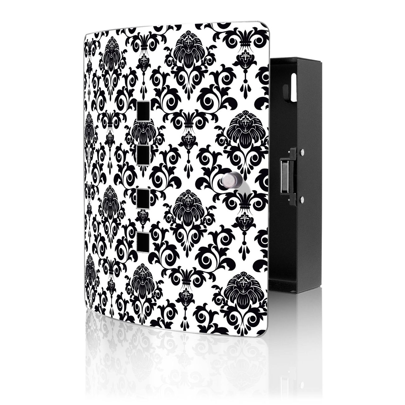 Funktion / Nutzen: Die leicht geschwungene Edelstahltür ist mit einer hochwertigen Motivfolie und dem Motiv Motiv Barock kaschiert. Ein praktischer Magnetverschluss ermöglicht Ihnen ein schnelles Öffnen und Schließen. Befestigt wird der Schlüsselkasten an 2 Stellen auf der Rückseite, passendes Montagematerial fügen wir bereits bei.