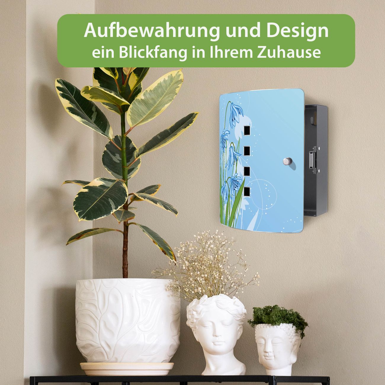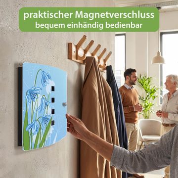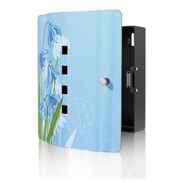 Funktion / Nutzen: Die leicht geschwungene Edelstahltür ist mit einer hochwertigen Motivfolie und dem Motiv Motiv Bergblaulilie kaschiert. Ein praktischer Magnetverschluss ermöglicht Ihnen ein schnelles Öffnen und Schließen. Befestigt wird der Schlüsselkasten an 2 Stellen auf der Rückseite, passendes Montagematerial fügen wir bereits bei.
