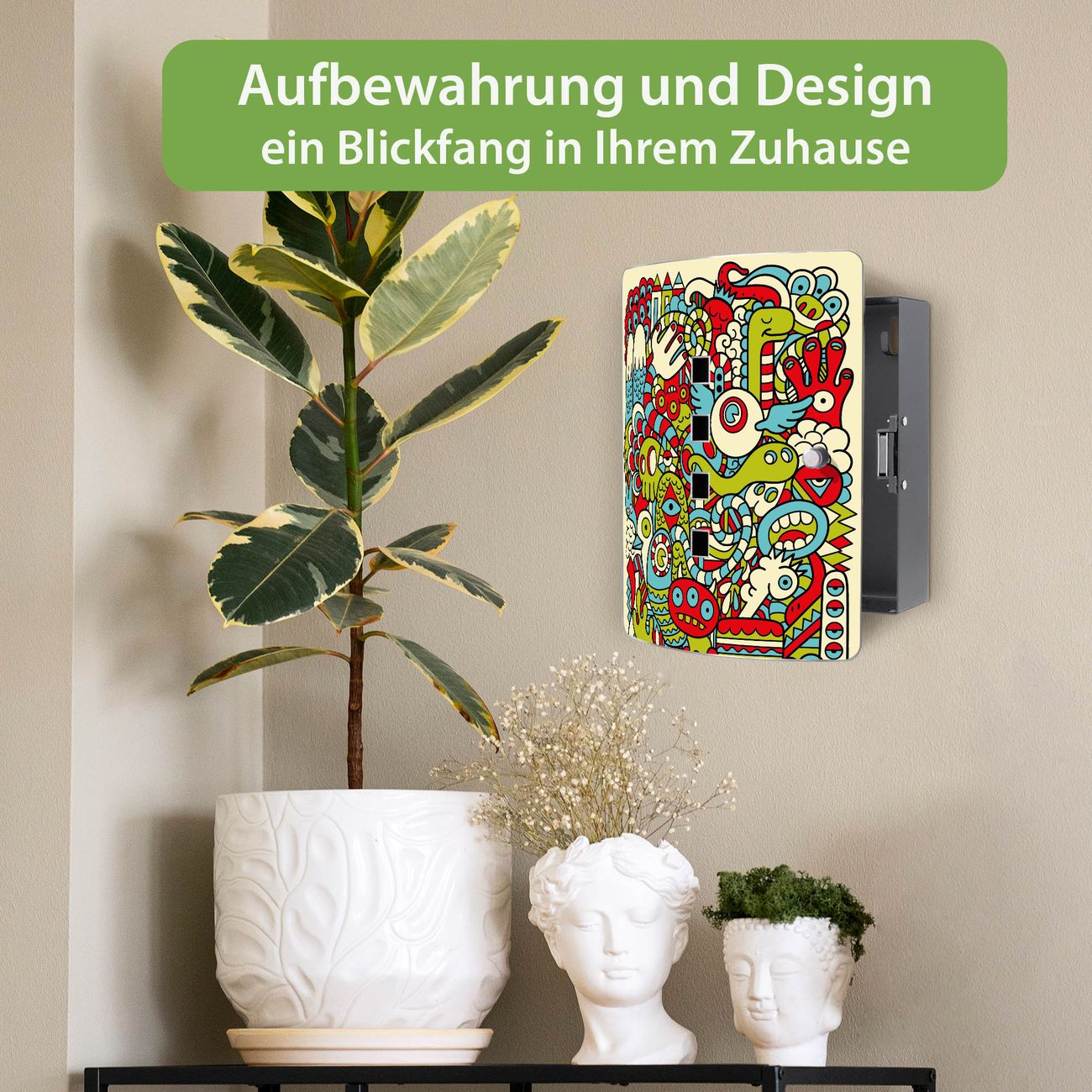 Funktion / Nutzen: Die leicht geschwungene Edelstahltür ist mit einer hochwertigen Motivfolie und dem Motiv Motiv Birds Worms Freaks kaschiert. Ein praktischer Magnetverschluss ermöglicht Ihnen ein schnelles Öffnen und Schließen. Befestigt wird der Schlüsselkasten an 2 Stellen auf der Rückseite, passendes Montagematerial fügen wir bereits bei.