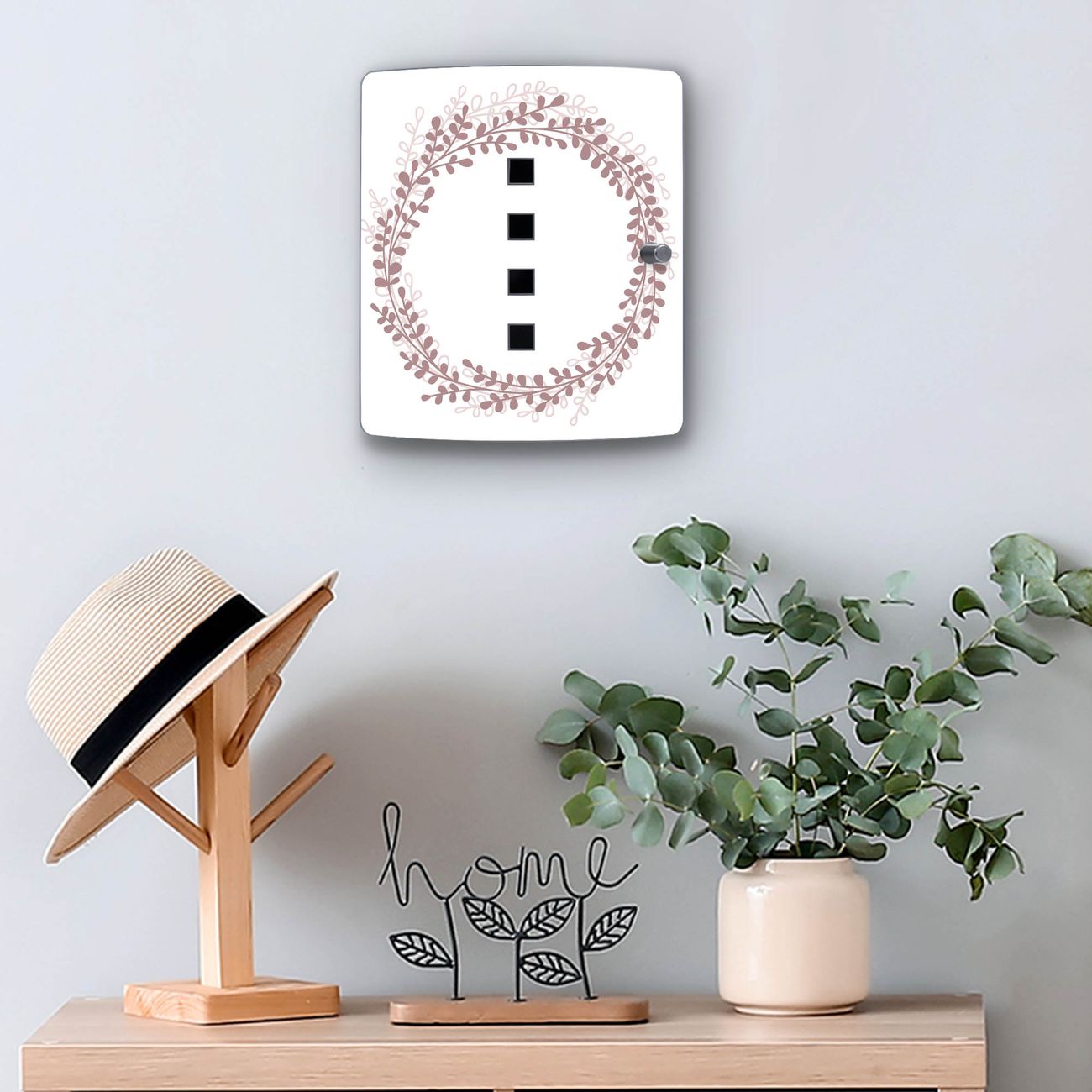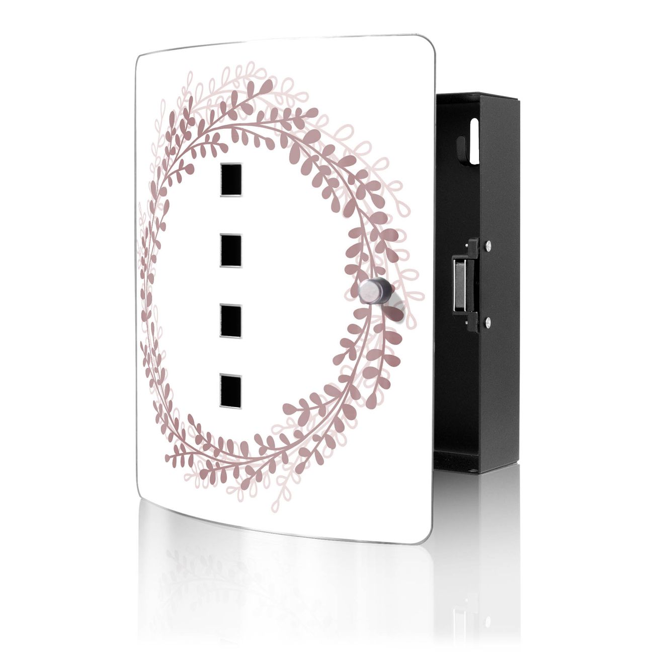 Funktion / Nutzen: Die leicht geschwungene Edelstahltür ist mit einer hochwertigen Motivfolie und dem Motiv Motiv Blätterkranz kaschiert. Ein praktischer Magnetverschluss ermöglicht Ihnen ein schnelles Öffnen und Schließen. Befestigt wird der Schlüsselkasten an 2 Stellen auf der Rückseite, passendes Montagematerial fügen wir bereits bei.