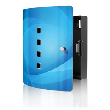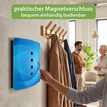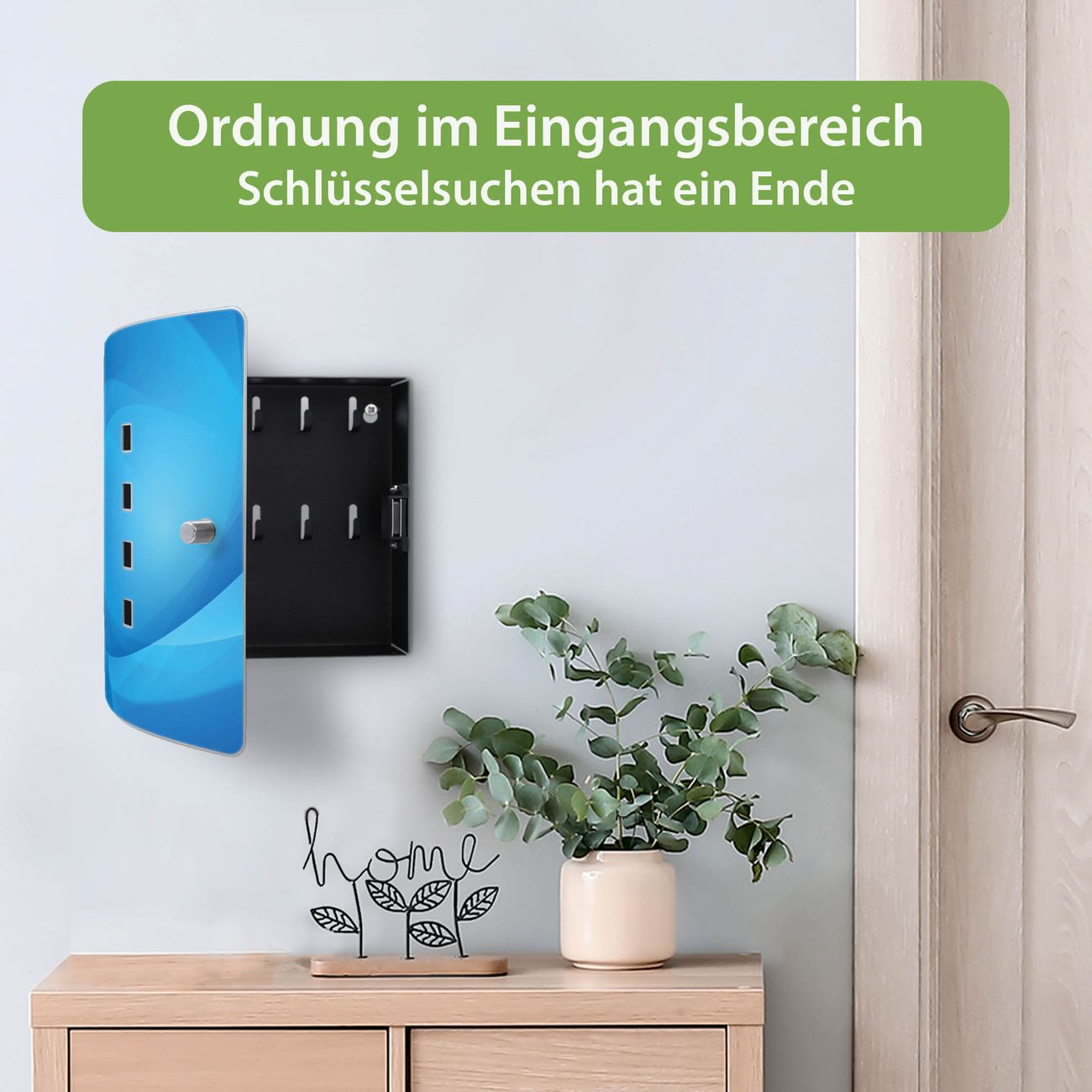 Funktion / Nutzen: Die leicht geschwungene Edelstahltür ist mit einer hochwertigen Motivfolie und dem Motiv Motiv Blaues Licht kaschiert. Ein praktischer Magnetverschluss ermöglicht Ihnen ein schnelles Öffnen und Schließen. Befestigt wird der Schlüsselkasten an 2 Stellen auf der Rückseite, passendes Montagematerial fügen wir bereits bei.