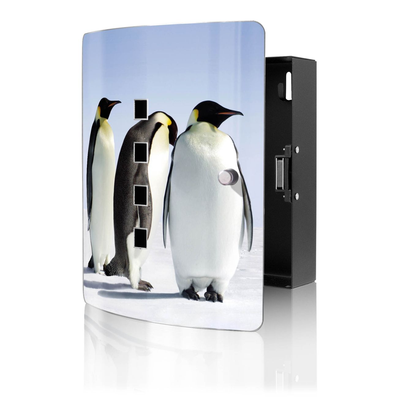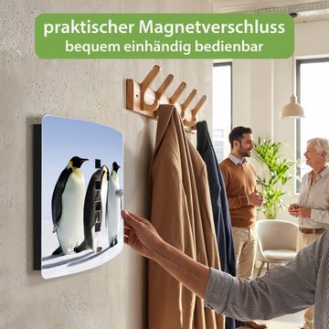 Funktion / Nutzen: Die leicht geschwungene Edelstahltür ist mit einer hochwertigen Motivfolie und dem Motiv Motiv Catch Up kaschiert. Ein praktischer Magnetverschluss ermöglicht Ihnen ein schnelles Öffnen und Schließen. Befestigt wird der Schlüsselkasten an 2 Stellen auf der Rückseite, passendes Montagematerial fügen wir bereits bei.