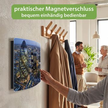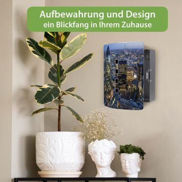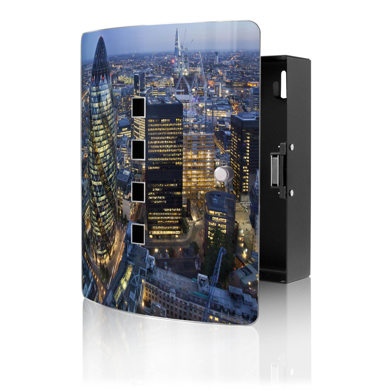 Funktion / Nutzen: Die leicht geschwungene Edelstahltür ist mit einer hochwertigen Motivfolie und dem Motiv Motiv City Of London kaschiert. Ein praktischer Magnetverschluss ermöglicht Ihnen ein schnelles Öffnen und Schließen. Befestigt wird der Schlüsselkasten an 2 Stellen auf der Rückseite, passendes Montagematerial fügen wir bereits bei.