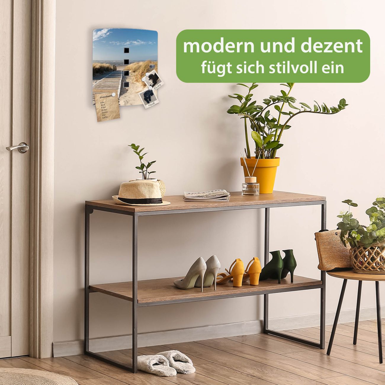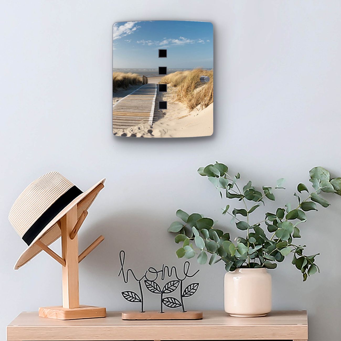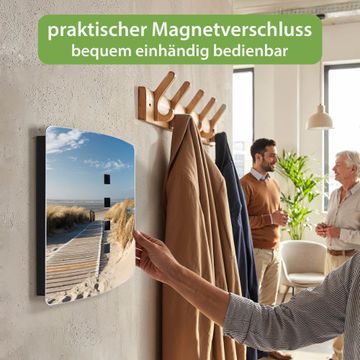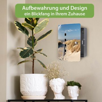 Funktion / Nutzen: Die leicht geschwungene Edelstahltür ist mit einer hochwertigen Motivfolie und dem Motiv Motiv Dünen kaschiert. Ein praktischer Magnetverschluss ermöglicht Ihnen ein schnelles Öffnen und Schließen. Befestigt wird der Schlüsselkasten an 2 Stellen auf der Rückseite, passendes Montagematerial fügen wir bereits bei.