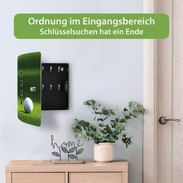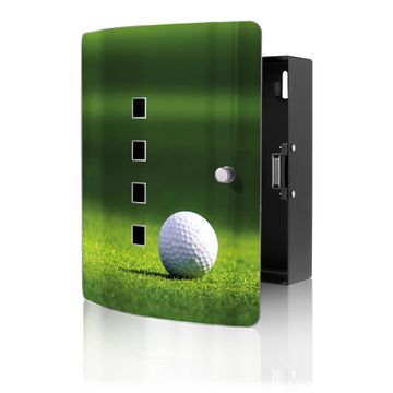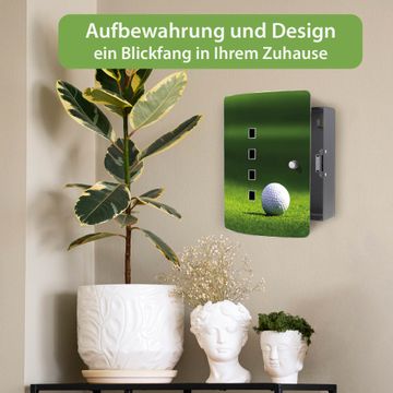 Funktion / Nutzen: Die leicht geschwungene Edelstahltür ist mit einer hochwertigen Motivfolie und dem Motiv Motiv Einsamer Golfball kaschiert. Ein praktischer Magnetverschluss ermöglicht Ihnen ein schnelles Öffnen und Schließen. Befestigt wird der Schlüsselkasten an 2 Stellen auf der Rückseite, passendes Montagematerial fügen wir bereits bei.