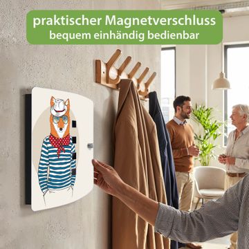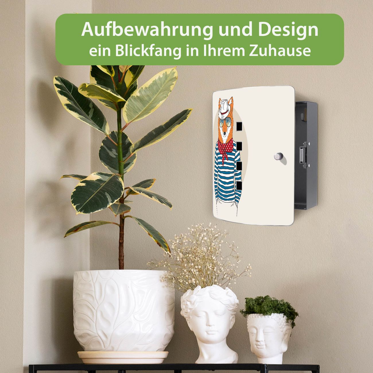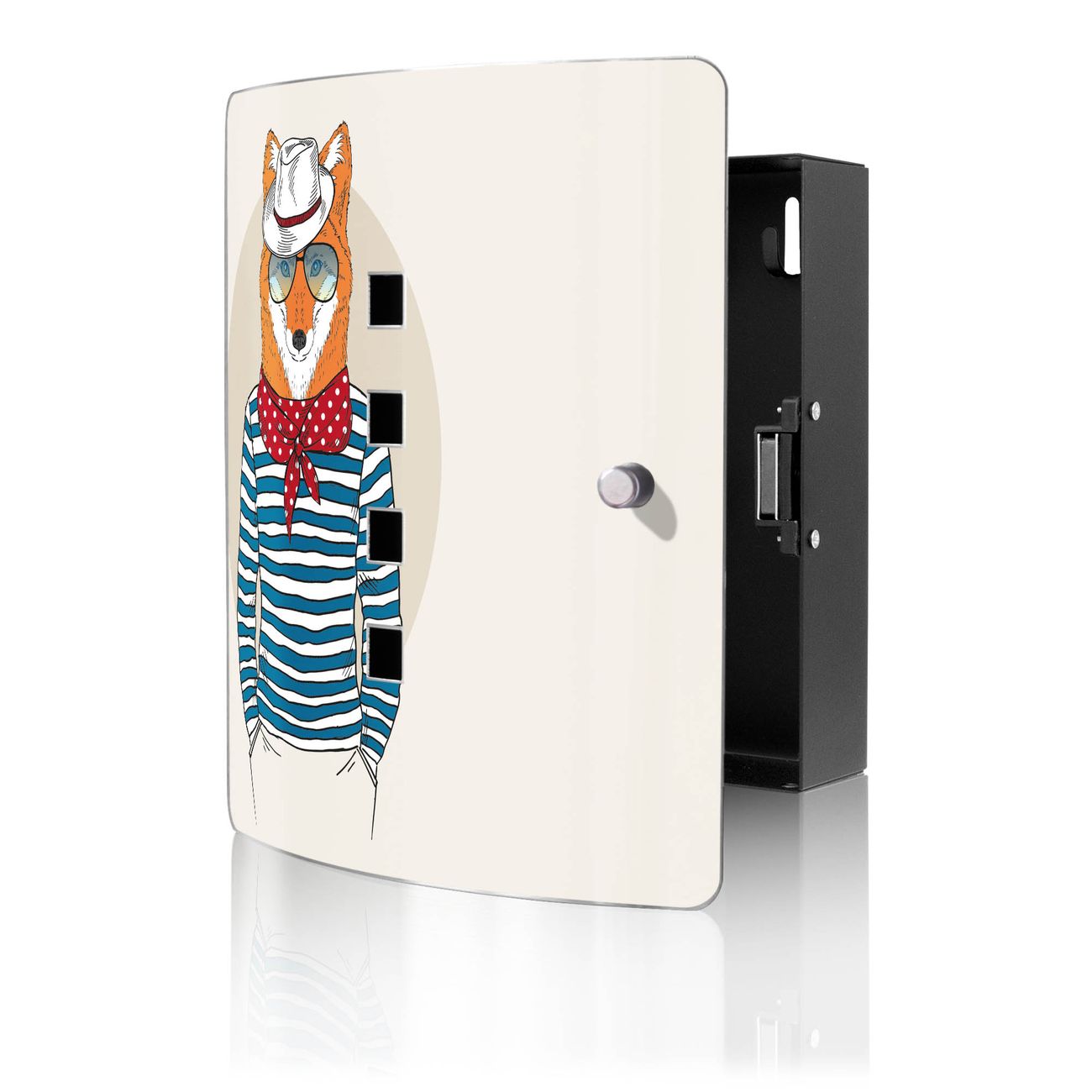Funktion / Nutzen: Die leicht geschwungene Edelstahltür ist mit einer hochwertigen Motivfolie und dem Motiv Motiv Fancy Fox kaschiert. Ein praktischer Magnetverschluss ermöglicht Ihnen ein schnelles Öffnen und Schließen. Befestigt wird der Schlüsselkasten an 2 Stellen auf der Rückseite, passendes Montagematerial fügen wir bereits bei.